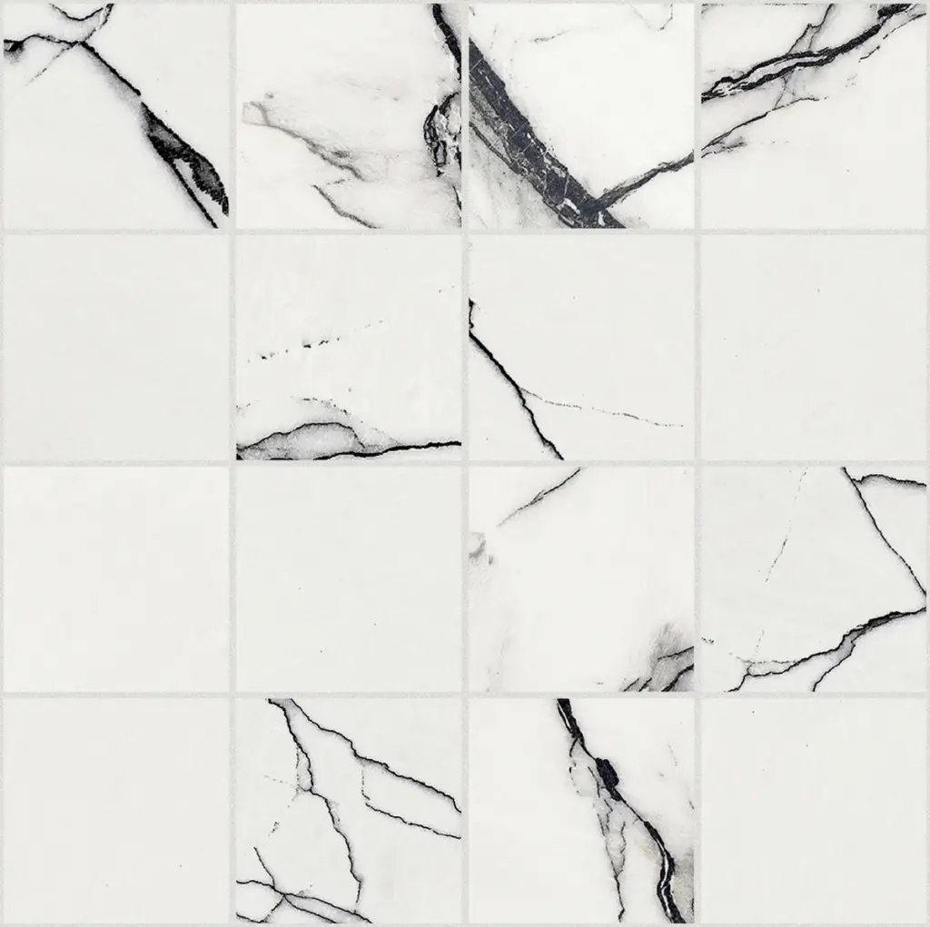B&W Marble White Hglossy Mosaico 3x3 30x30