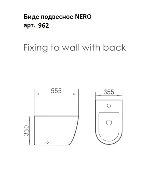 Boheme Bianca Биде подвесное 55,5х35,5х35h см, 1 отверстие под смеситель, перелив хром, цвет: black 962