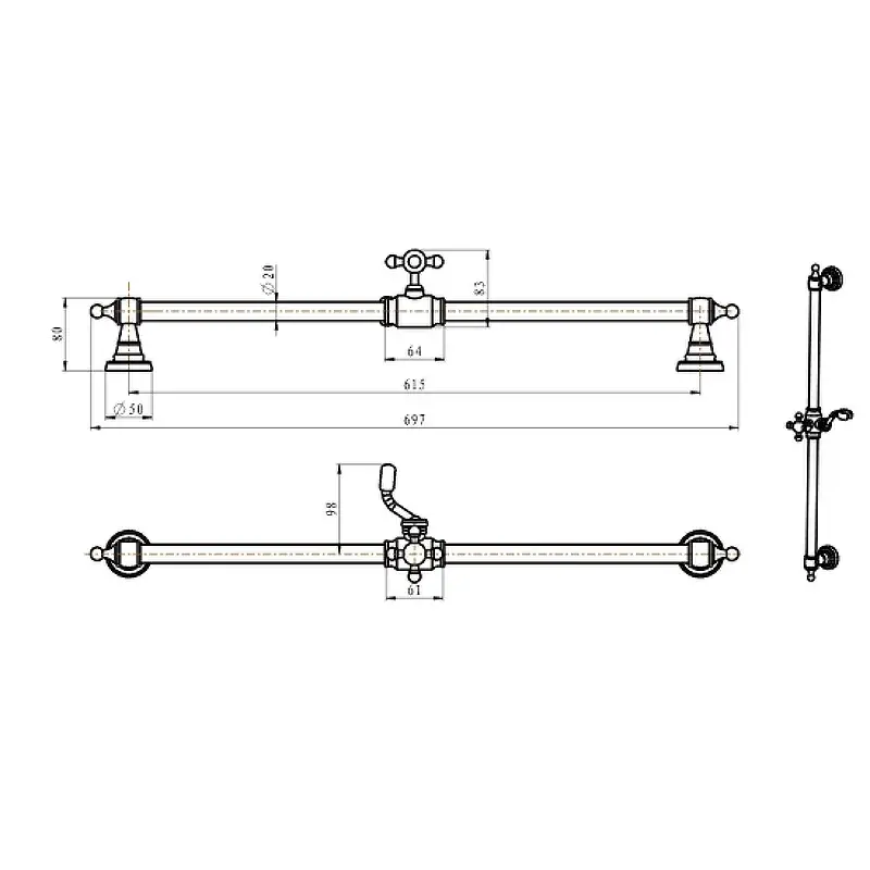 Boheme Brillante Душевая штанга 70 см с держателем для душа, цвет: bronze 416