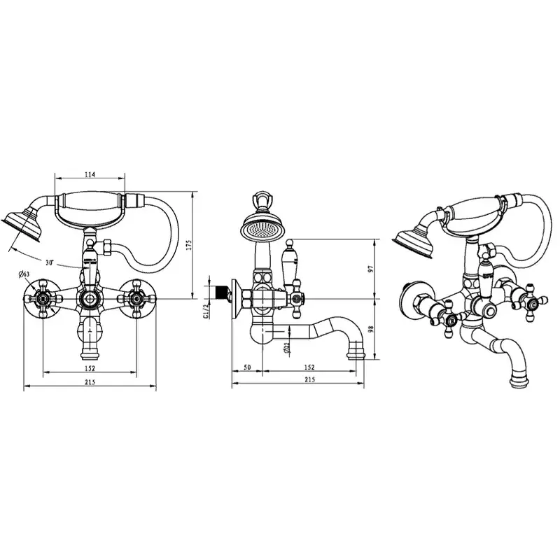 Boheme Camelia Смеситель для ванны с душевым комплектом: ручной душ, излив 21,5 см, цвет: chrome 273-Camelia