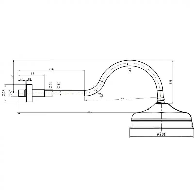 Boheme Imperiale Верхний душ 20,8 см, 1 вид струи, кронштейн настенный 44,5 см, цвет: gold 414
