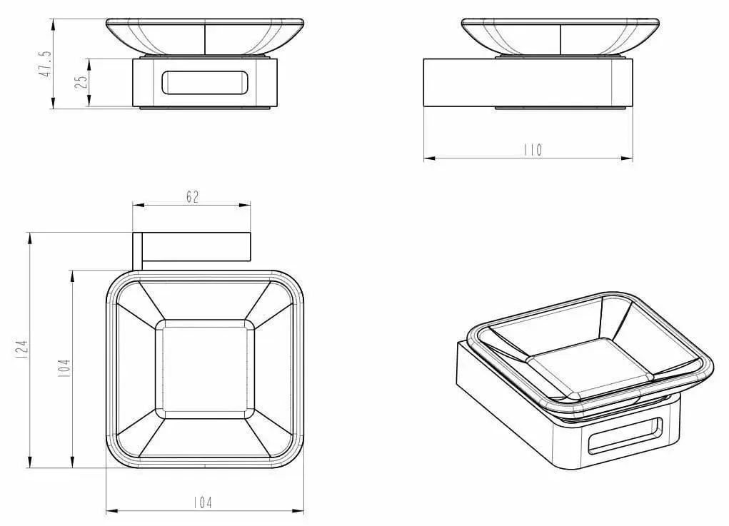 Boheme Q Мыльница со стеклянной чашей, подвесная, цвет: gun metall 10943-GM