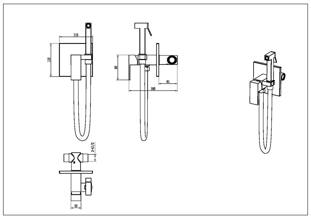 Boheme Qubic Гигиенический душ со смесителем и встраиваемой частью, цвет: nickel brush 477-NB