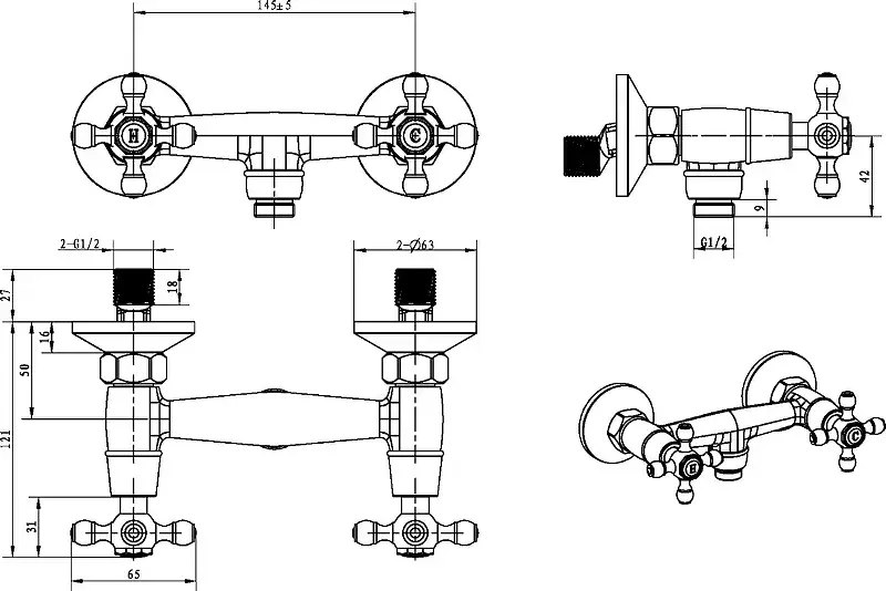 Boheme Royal Cristal Смеситель для душа без излива и душевого набора, цвет: chrome 274-Royal/CRST black