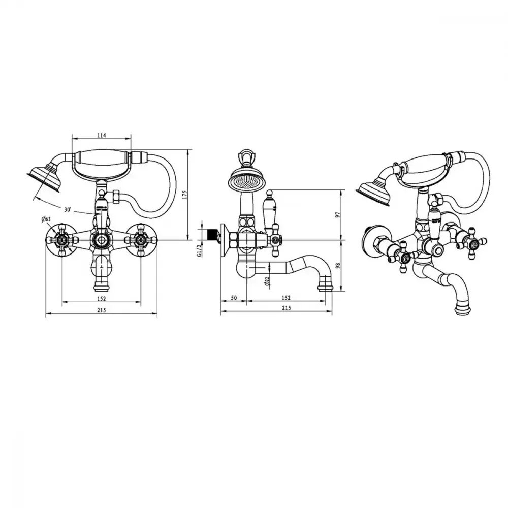 Boheme Tradizionale Chromo Смеситель для ванны с душевым набором, излив 21,5 см, цвет: chrome 273