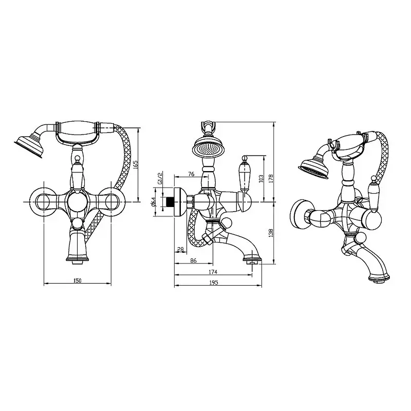 Boheme Tradizionale Смеситель для ванны с душевым комплектом: ручн. душ, шланг, держат., цвет:chrome 263-BLC