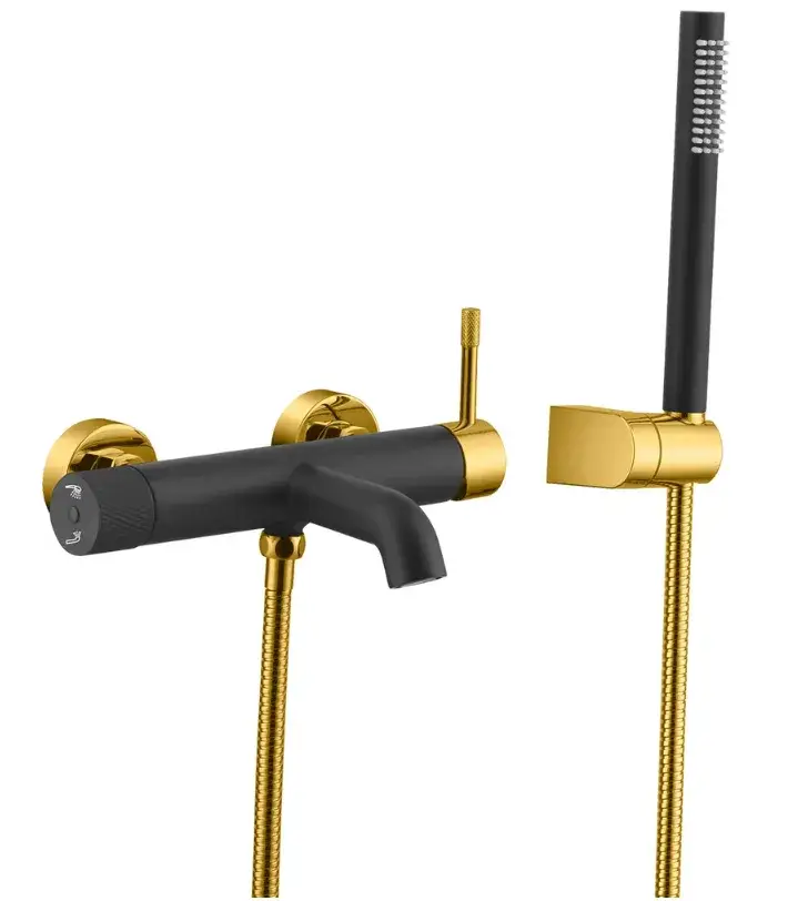 Boheme Uno Смеситель для ванны с душевым комплектом: ручной душ, шланг, излив 19 см, цвет:black/gold 463-BG