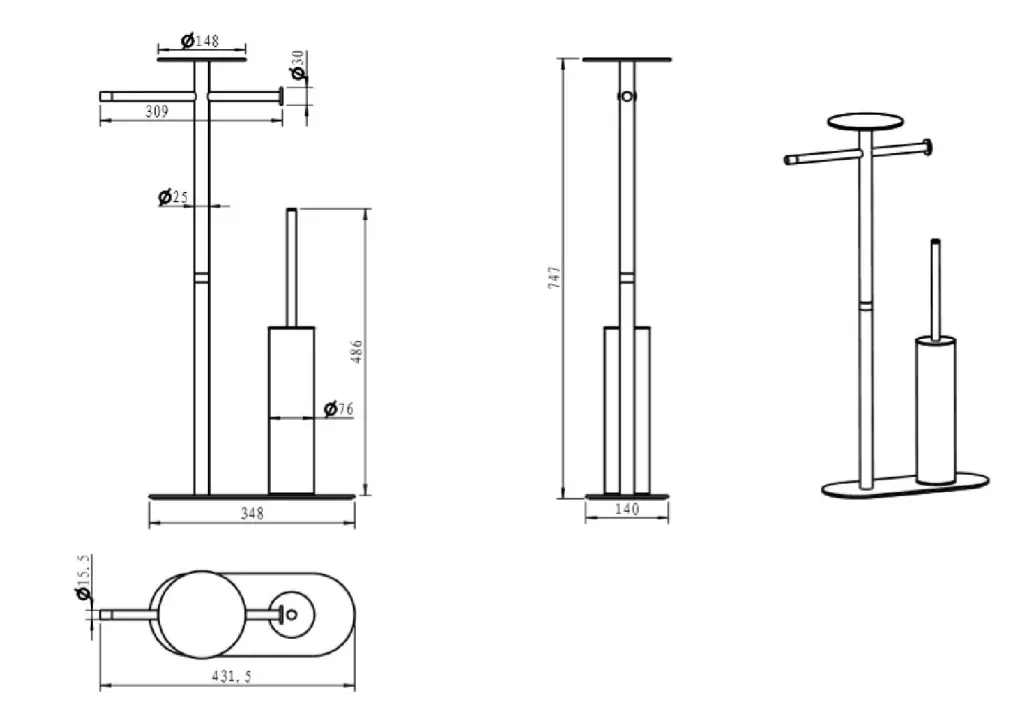 Boheme Venturo Стойка напольная - ершик, держатель бумаги, полочка, цвет: black 10953-B