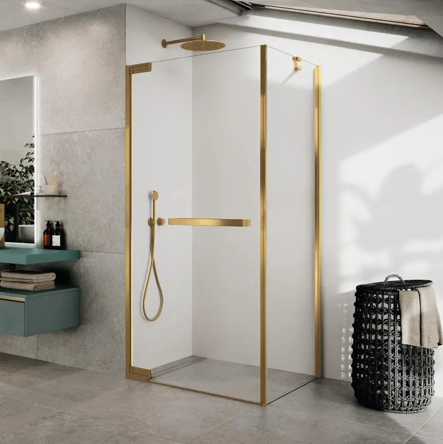 Боковая стенка 90 см (88-89,5x200) Novellini N180 N180FG90-1P, профиль Brushed Gold, стекло прозрачное CrystalClear