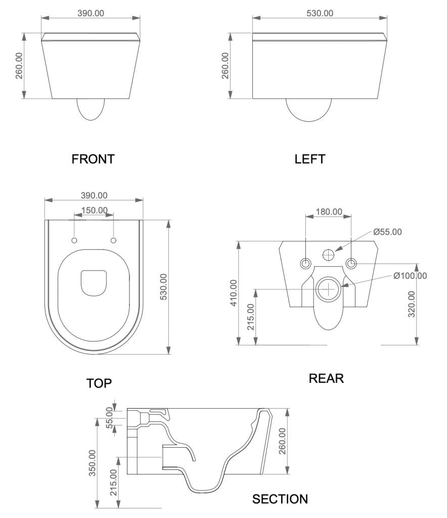 Чаша подвесного унитаза GSG Ceramic Design Cruise CRWCSO001, белый матовый