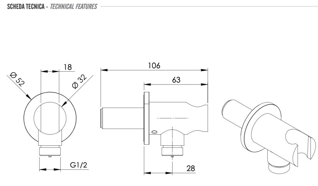 Держатель ручного душа с подключением шланга Remer INOX SS337M, нержавеющая сталь