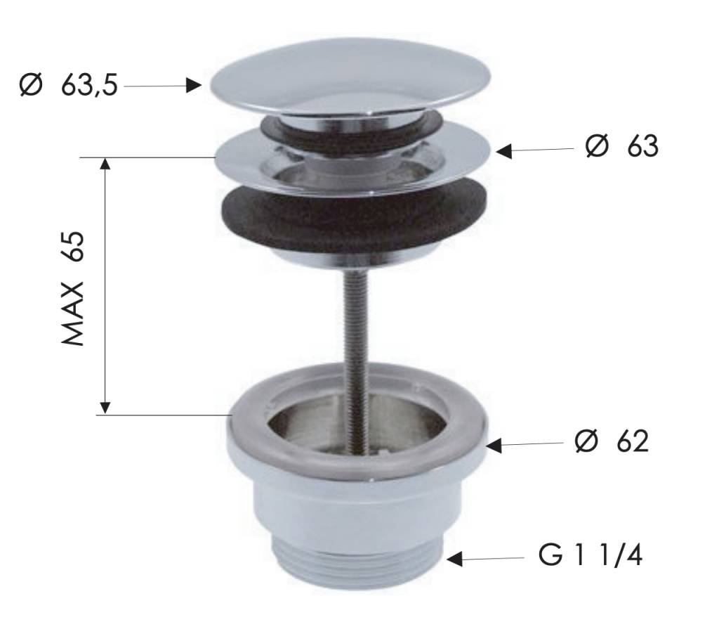 Донный клапан универсальный 1”1/4 Remer 905CCR114XV, сталь