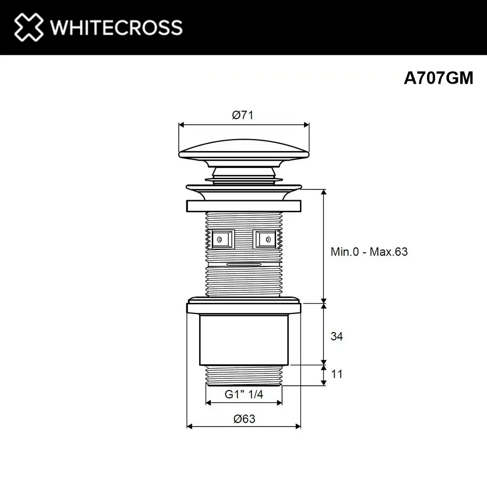 Донный клапан WHITECROSS A707BLC (черный керамический);Донный клапан WHITECROSS A707CPB (брашированная медь);Донный клапан WHITECROSS A707CR (хром);Донный клапан WHITECROSS A707GL (золото);Донный клапан WHITECROSS A707GLB (брашированное золото);Донный клапан WHITECROSS A707GM (оружейная сталь);Донный клапан WHITECROSS A707NIB (брашированный никель);Донный клапан WHITECROSS A707WHC (белый керамический)