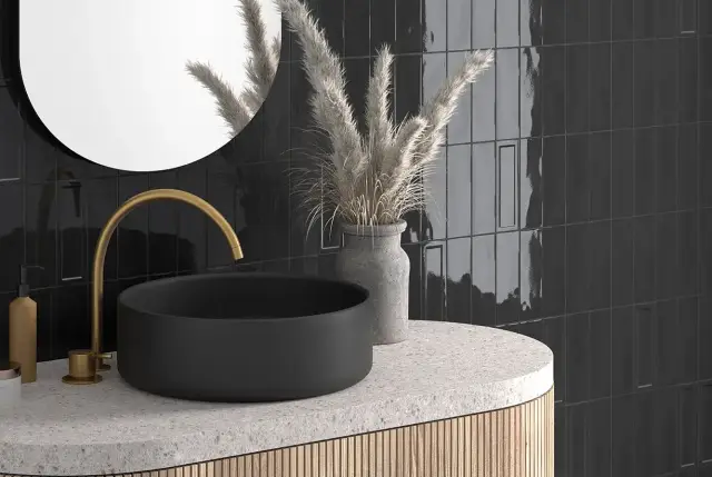 Equipe Island Настенная керамическая плитка Black 6.5x20 глазурованный глянцевый