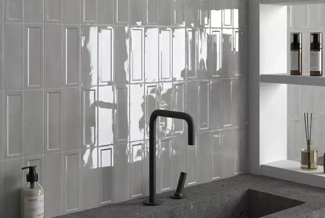 Equipe Island Настенная керамическая плитка Frame Silver 6.5x20 глазурованный глянцевый