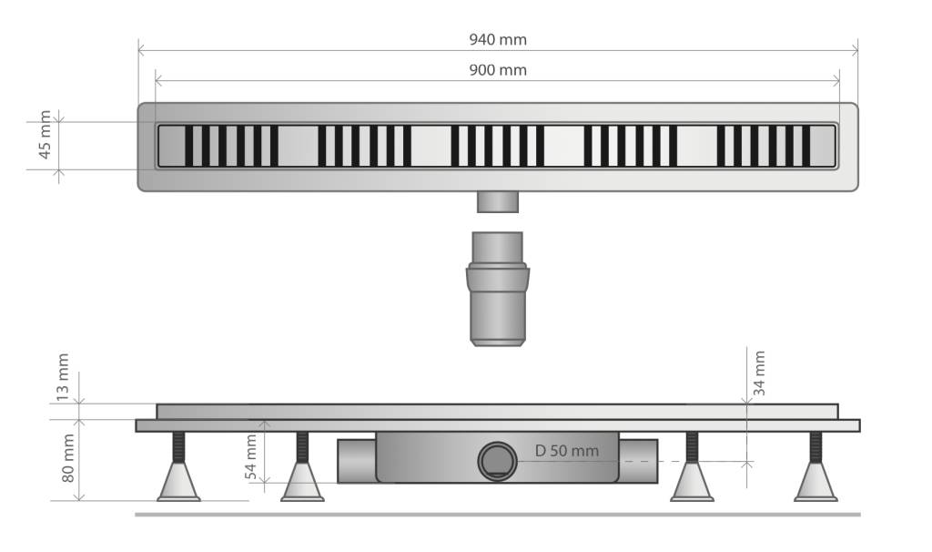 Дренажный канал 90 см, решетка под плитку, сухой затвор, ABS, горизонтальный выход OMP Tea Basicflow 4943.373.8