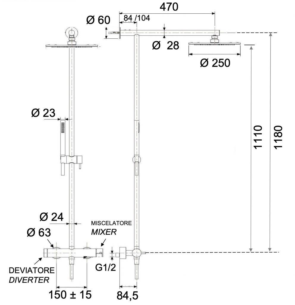 Душевая система Remer X Style INOX SSX37UFM25, нержавеющая сталь