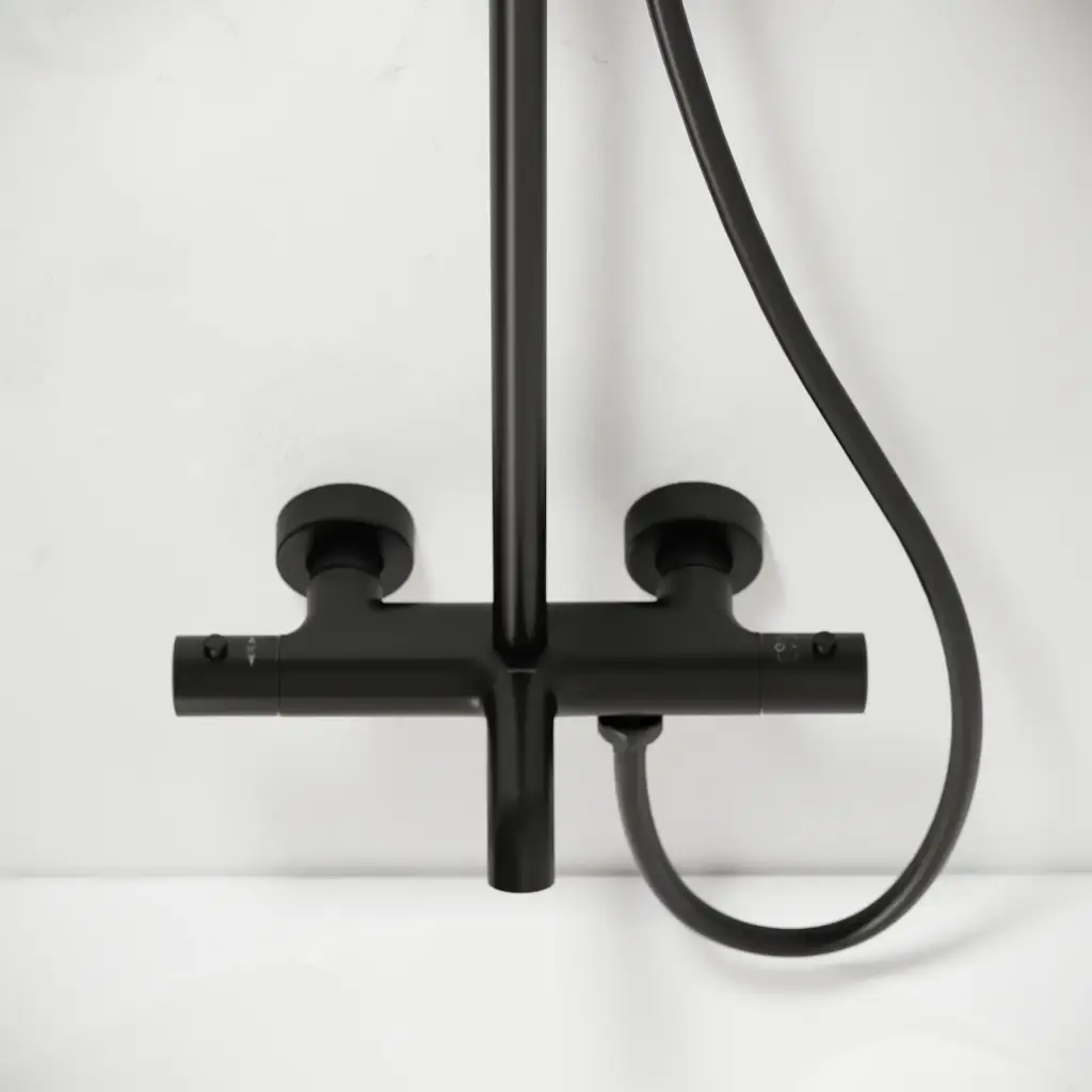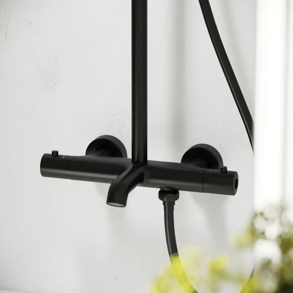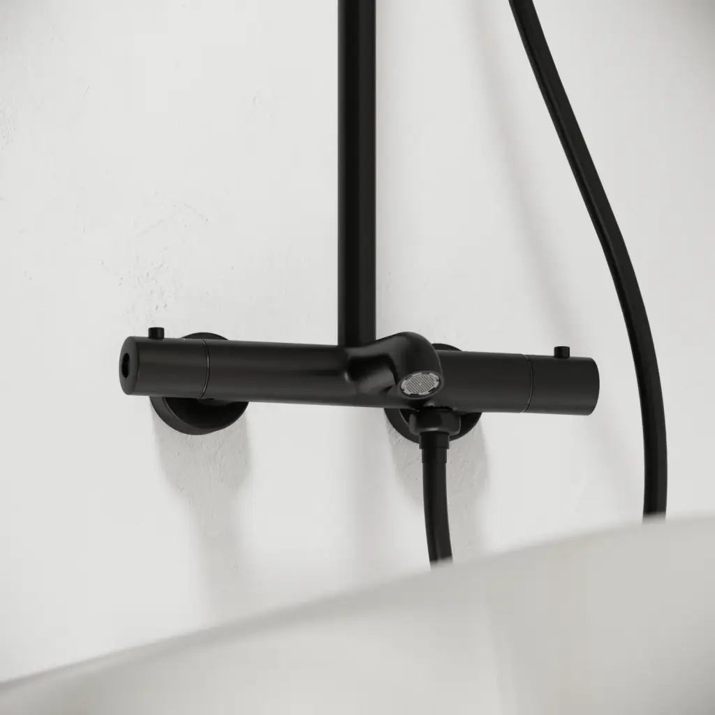 Душевая стойка SANCOS Гейм (Game) для душа с термостатическим смесителем, верхним и ручным душем, цвет черный матовый, арт. SC3002MB