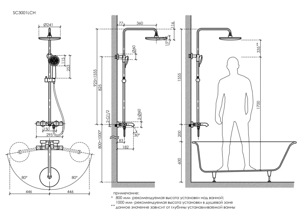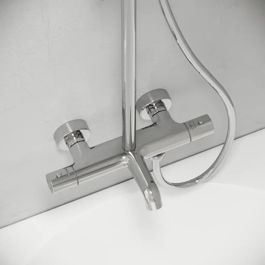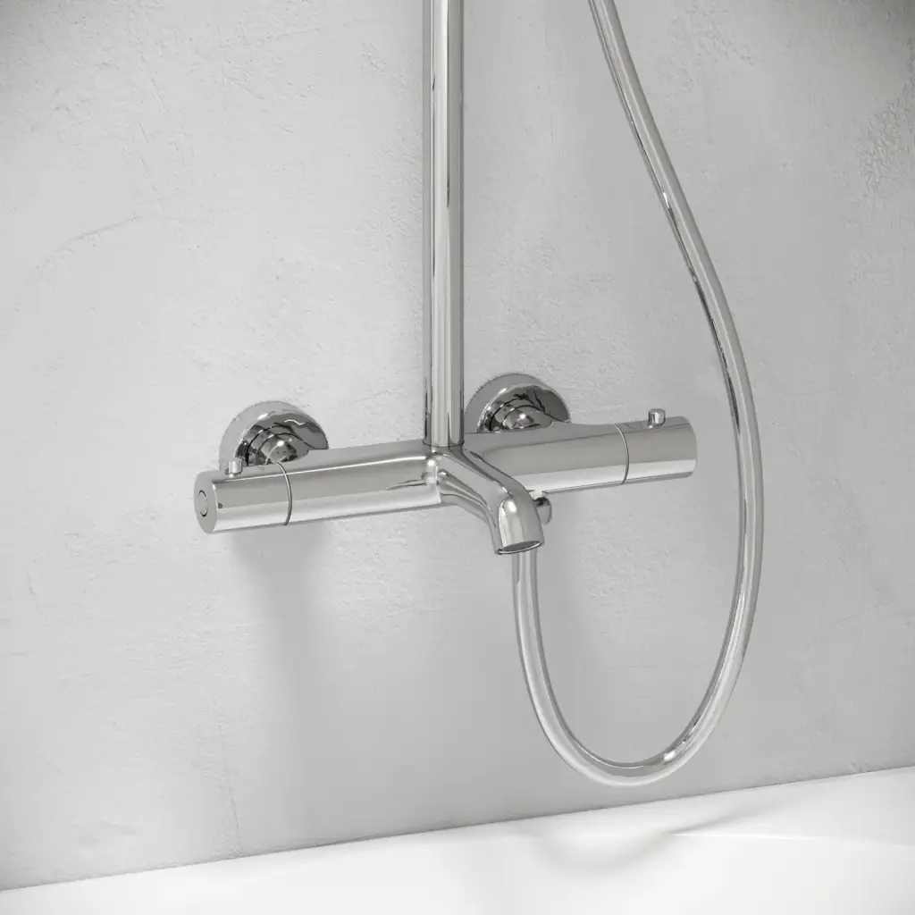Душевая стойка с изливом и термостатом для ванны/душа Гейм (Game), с регулировкой по высоте, цвет хром, арт.SC3001LCH