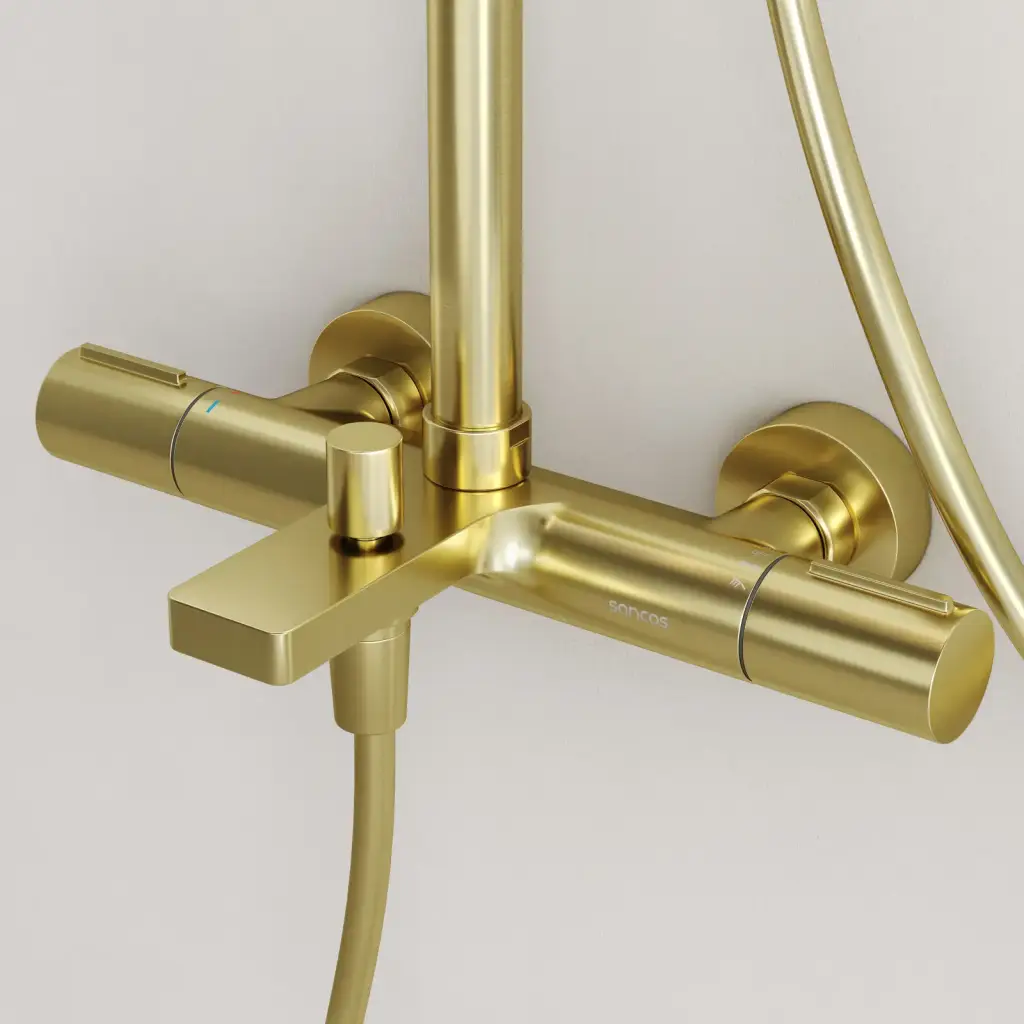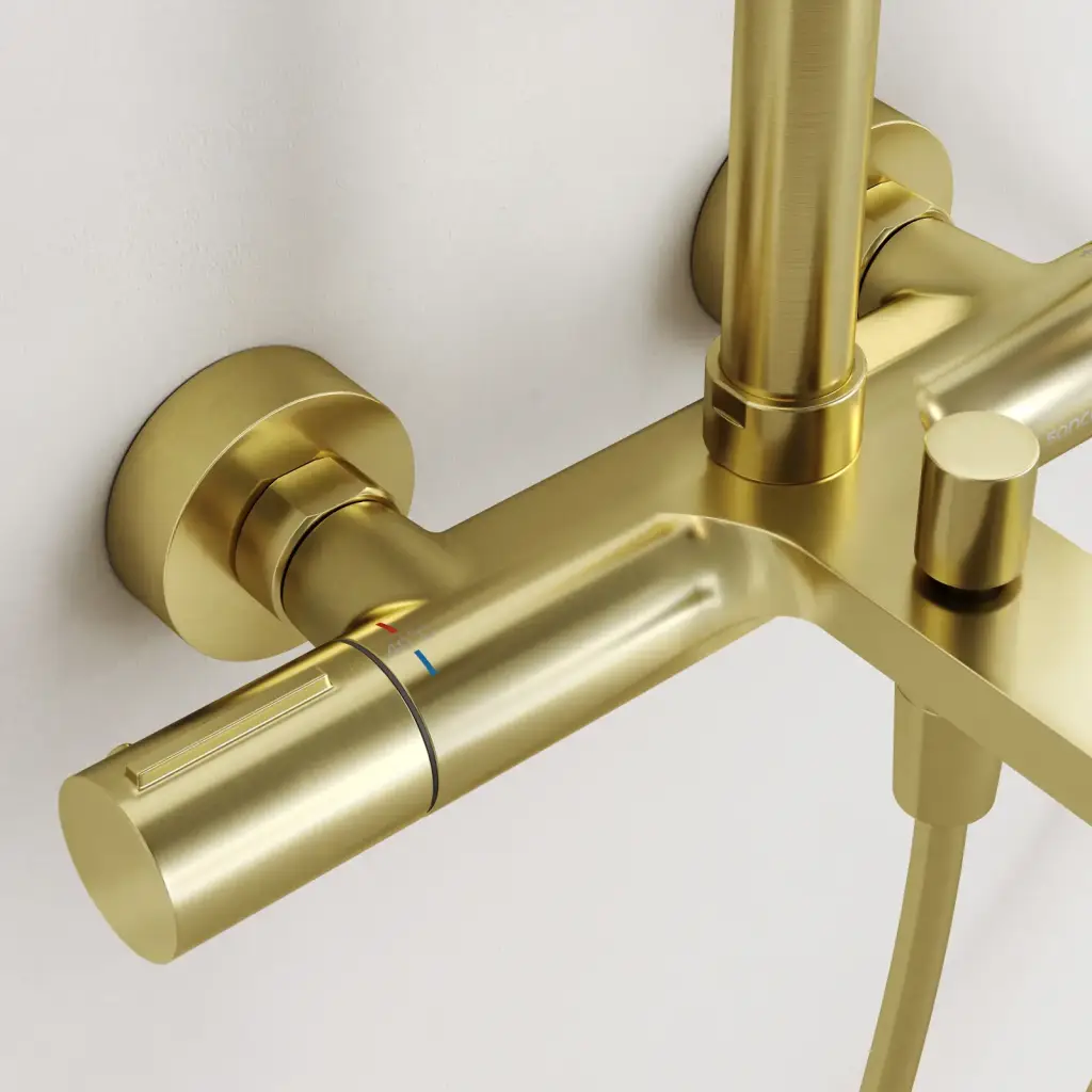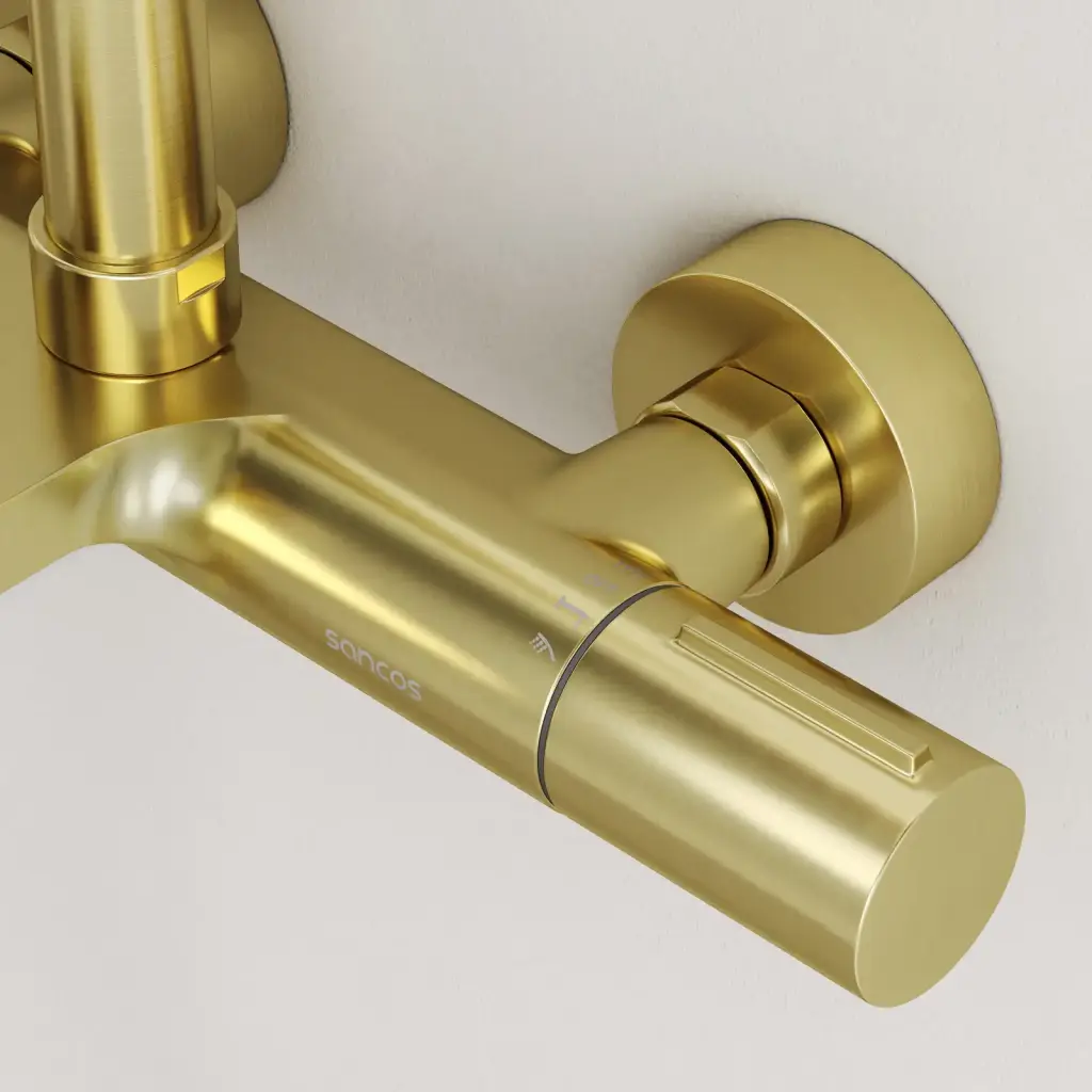 Душевая стойка с термостатом и изливом SANCOS Этна (Etna), брашированное золото, PVD покрытие, арт. SC9008BG