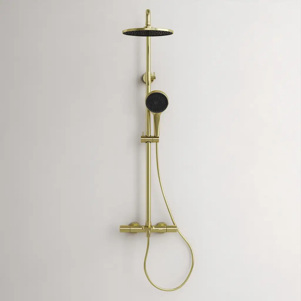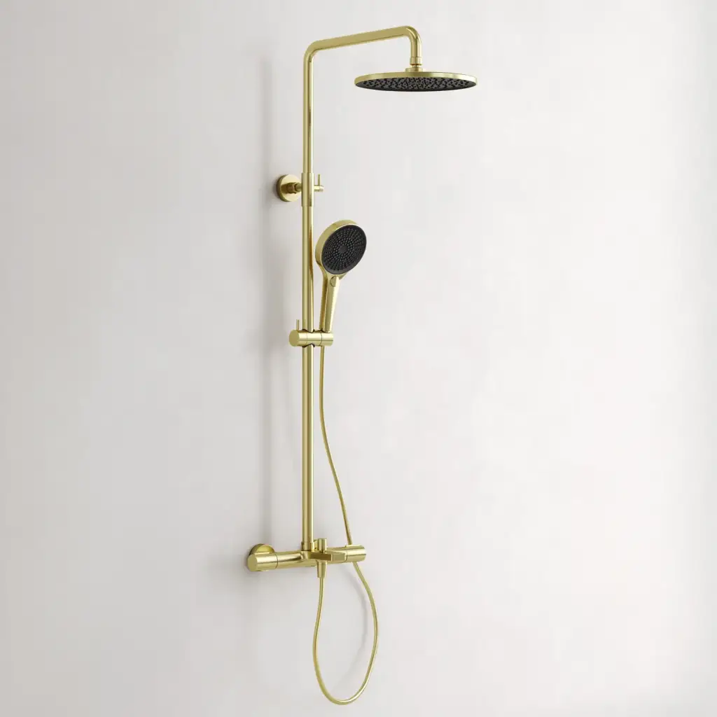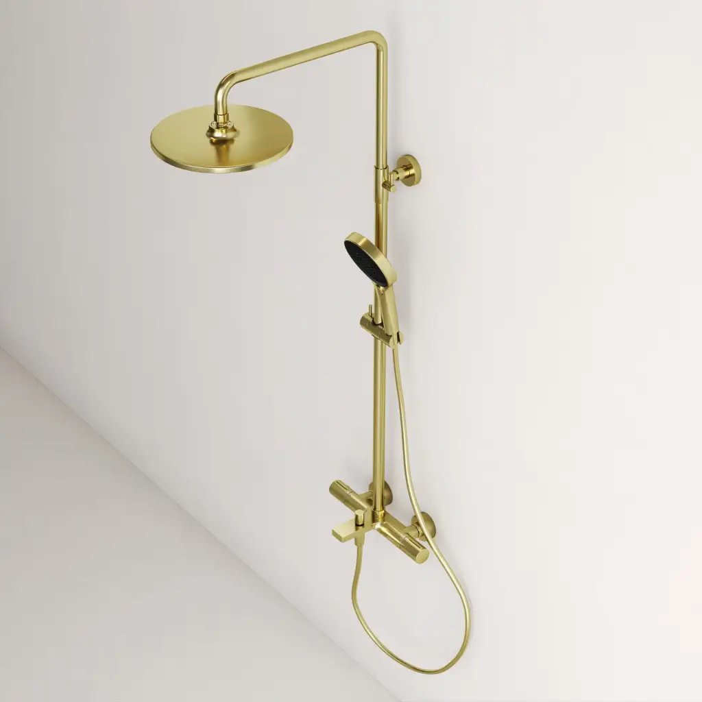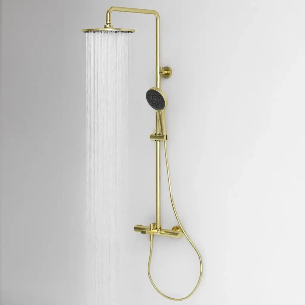 Душевая стойка с термостатом и изливом SANCOS Этна (Etna), брашированное золото, PVD покрытие, арт. SC9008BG