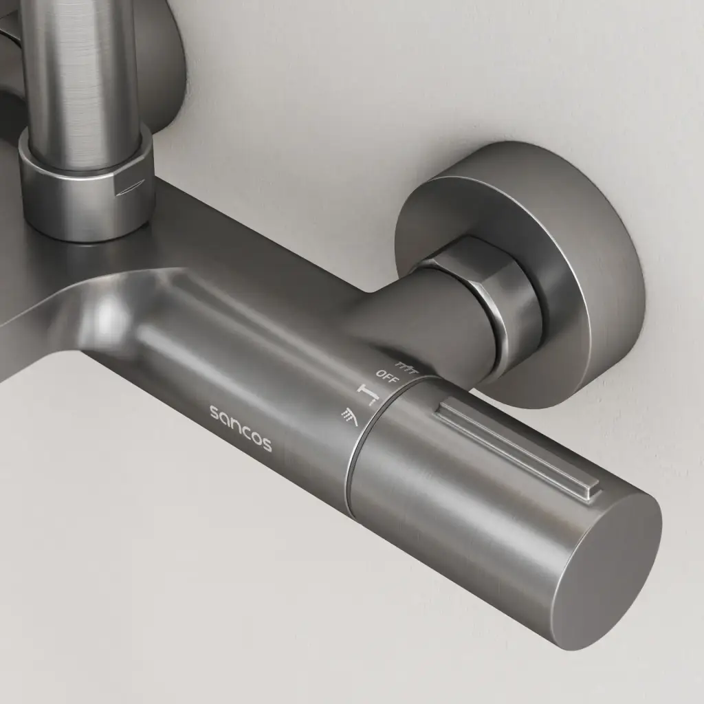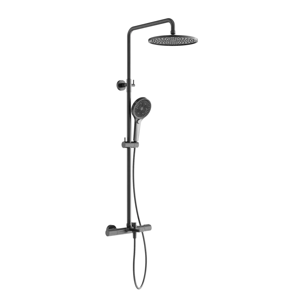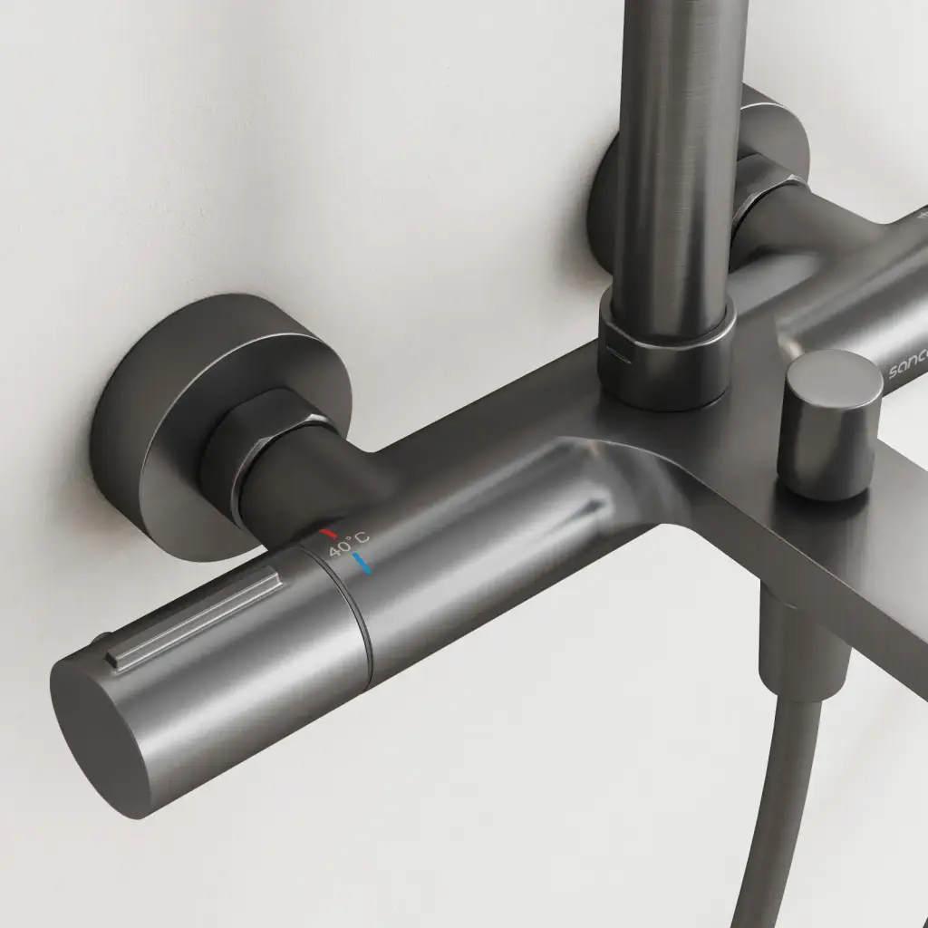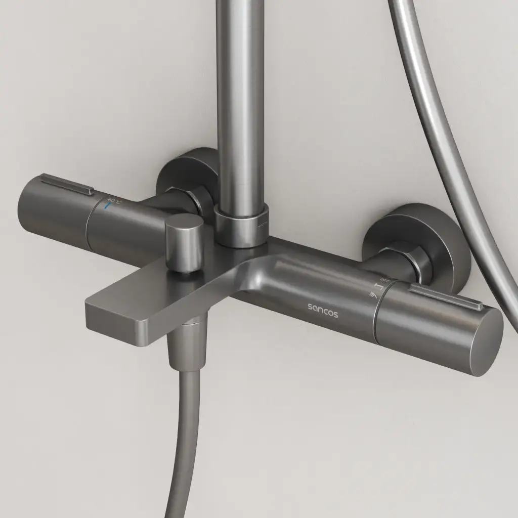 Душевая стойка с термостатом и изливом SANCOS Этна (Etna), вороненая сталь, арт. SC9008GG