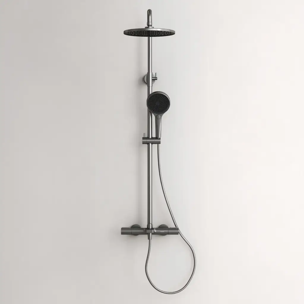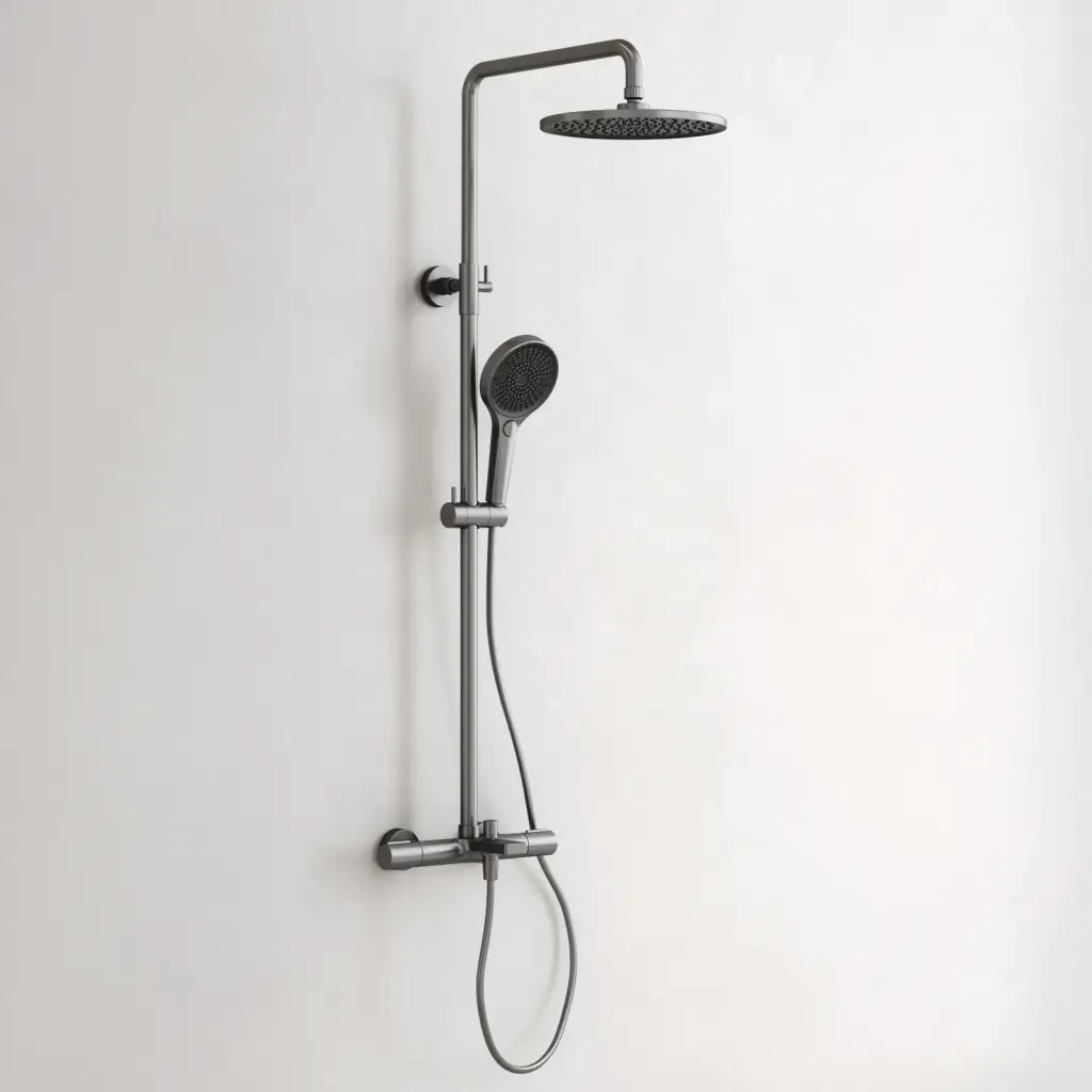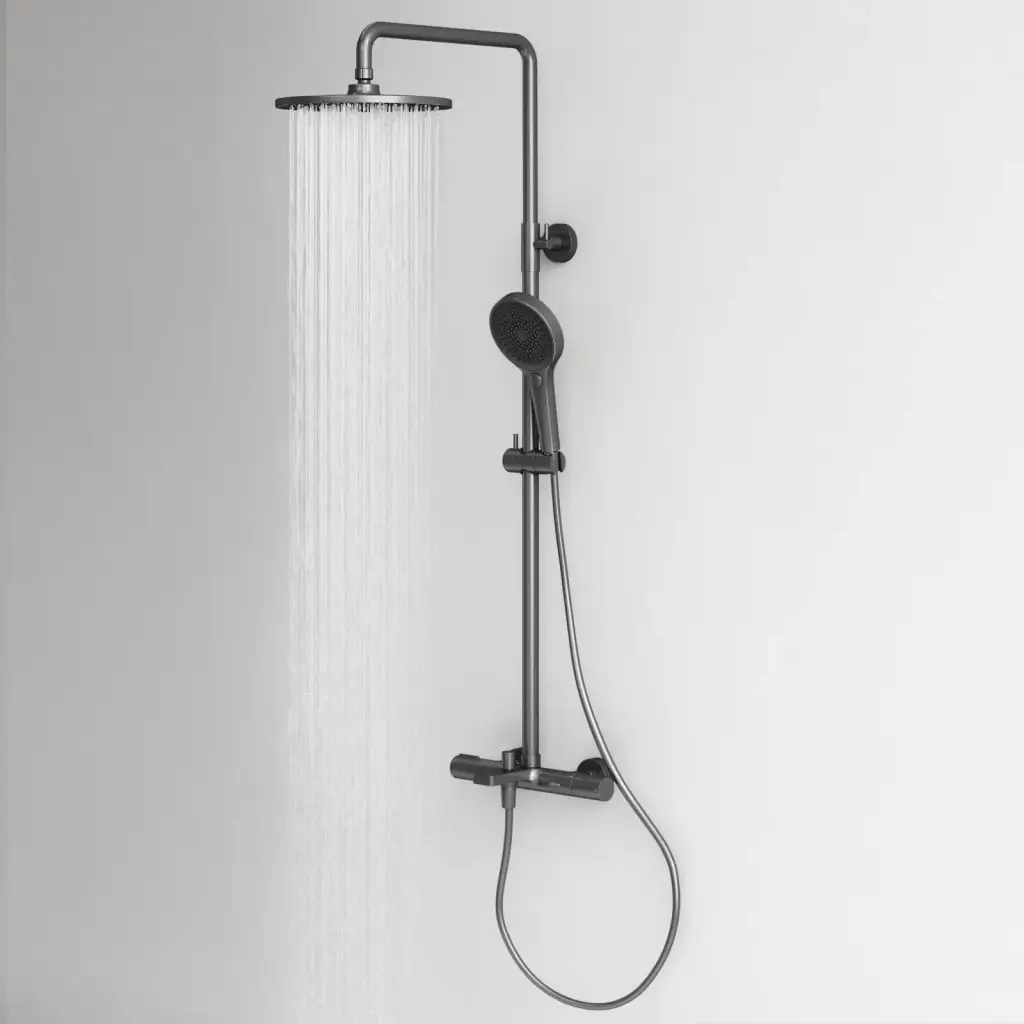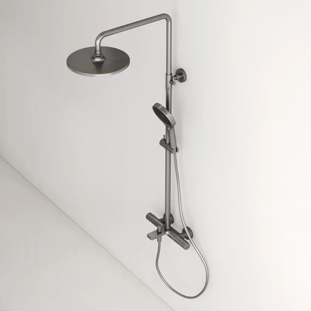 Душевая стойка с термостатом и изливом SANCOS Этна (Etna), вороненая сталь, арт. SC9008GG