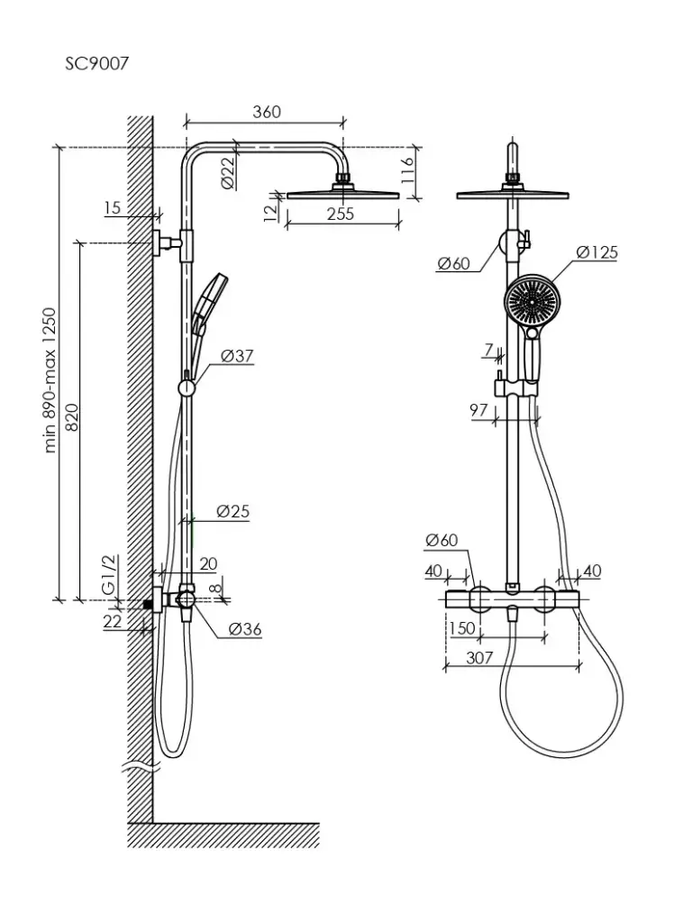 Душевая стойка с термостатом SANCOS Этна (Etna), хром, арт. SC9007CH