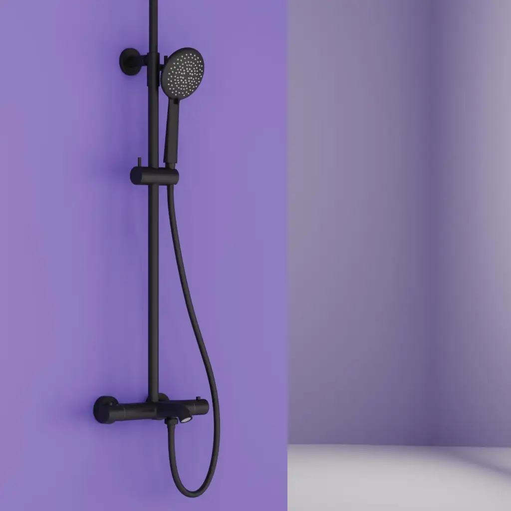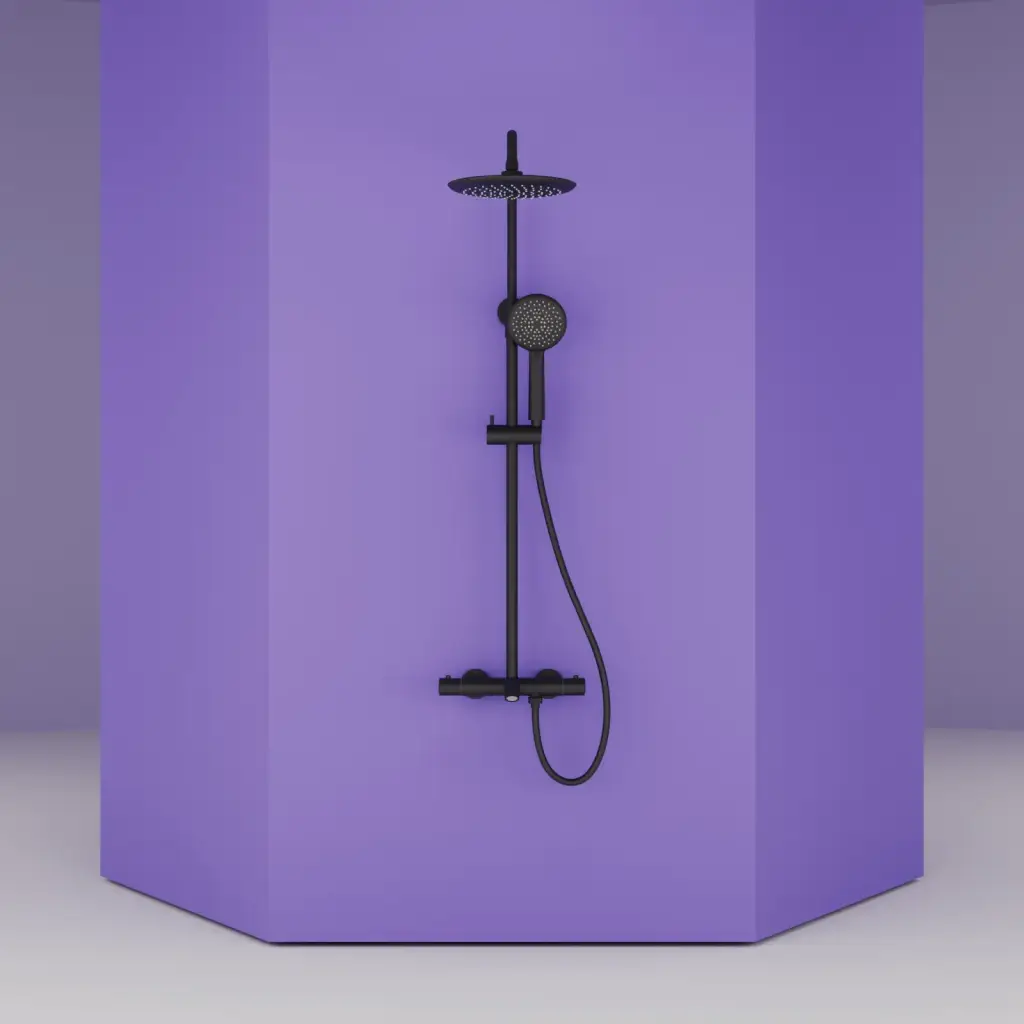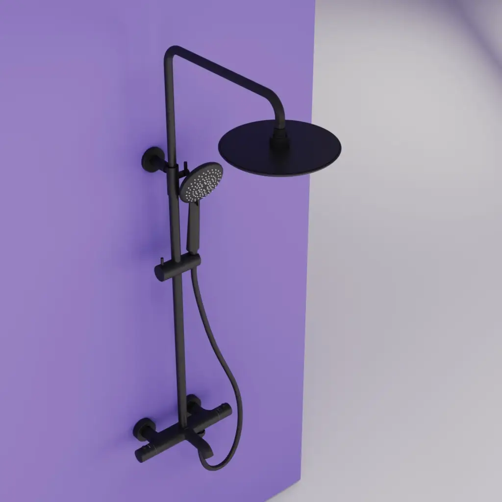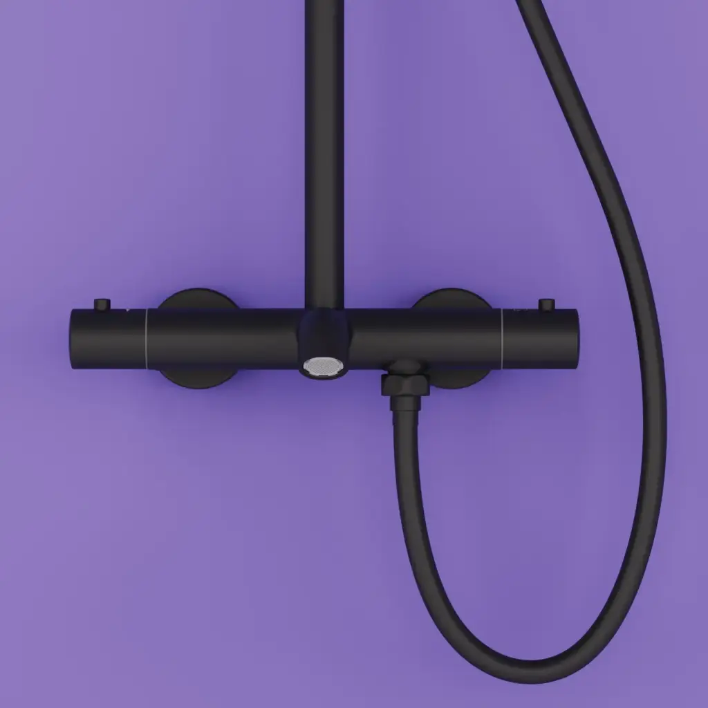 Душевая стойка SANCOS Гейм (Game) для душа с термостатическим смесителем, верхним и ручным душем, цвет черный матовый, арт. SC3002MB