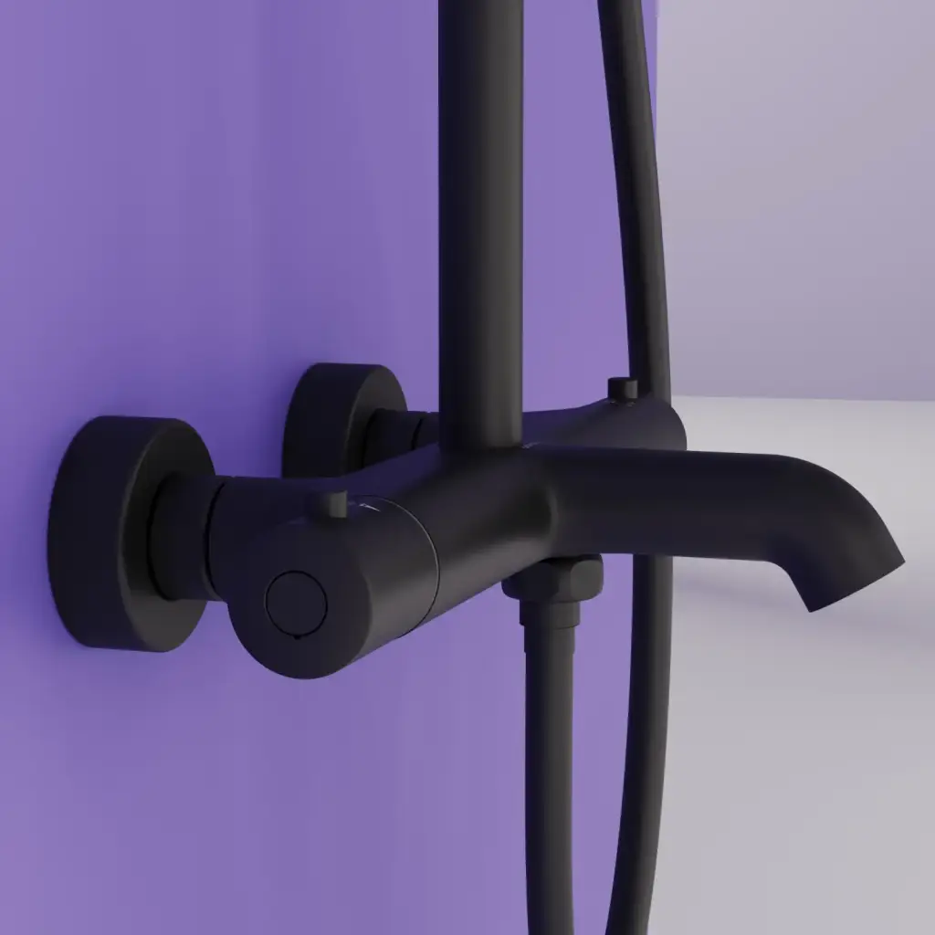 Душевая стойка с изливом и термостатом для ванны/душа Гейм (Game), с регулировкой по высоте, цвет черный матовый, арт.SC3001LMB