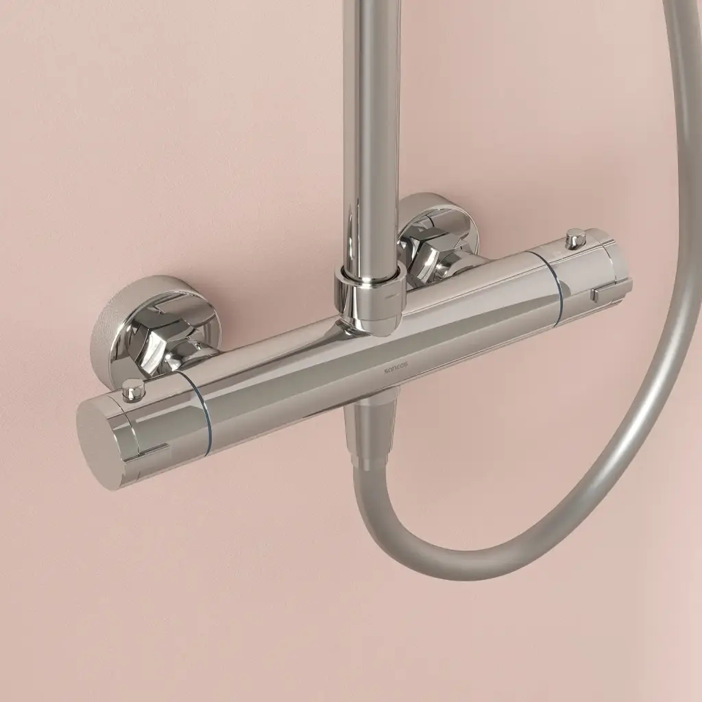 Душевая стойка SANCOS Канедo (Kanedo) с термостатом с верхним душем Ø245 мм, ручным душ Ø120 мм, 4 режима хром SC7200CH