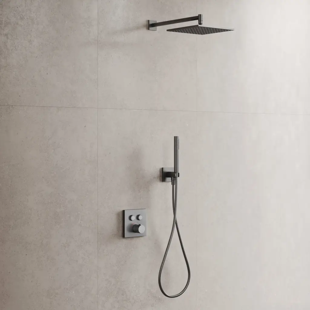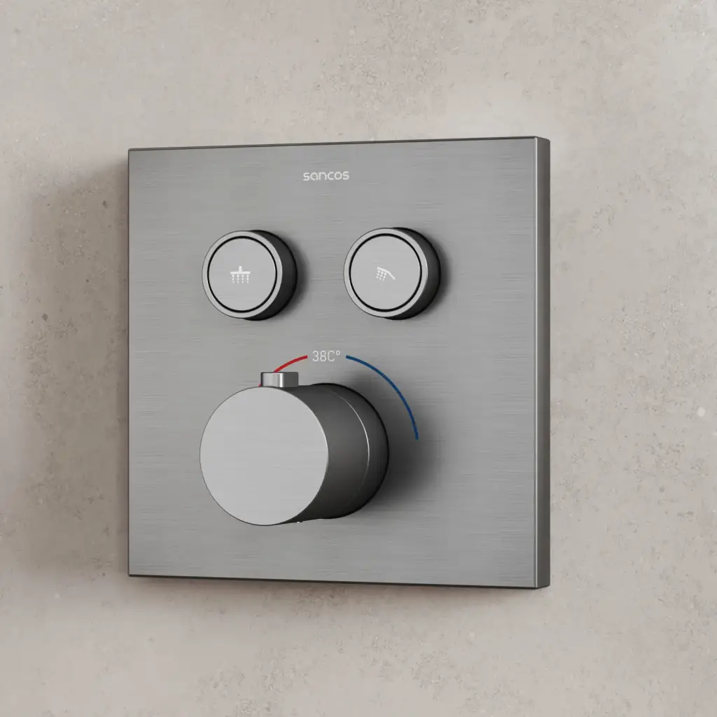 Душевой комплект с термостатом SANCOS Линн (Linn), с внутренней частью, вороненая сталь арт. SC9022GG