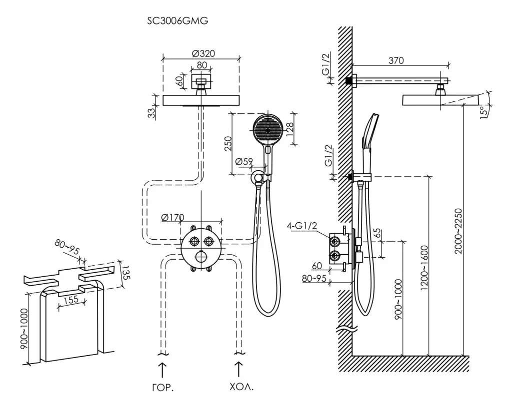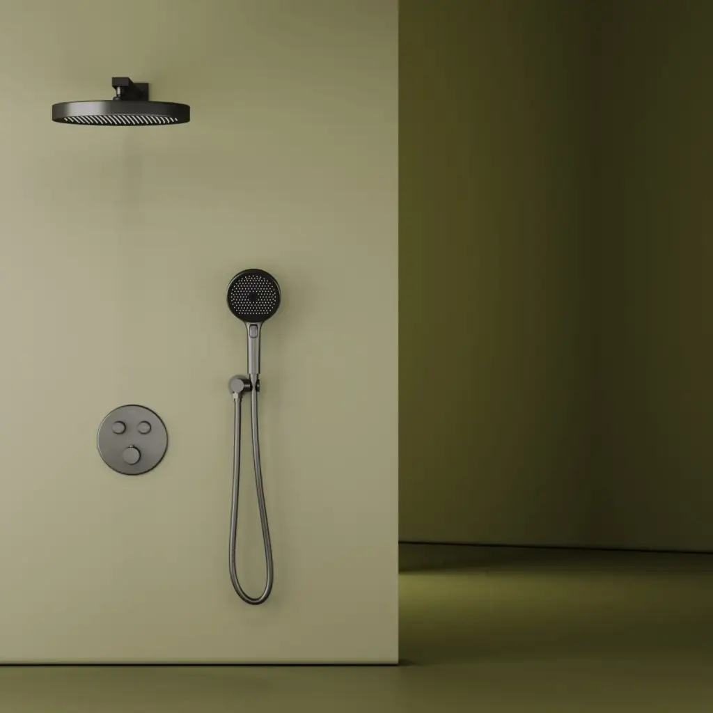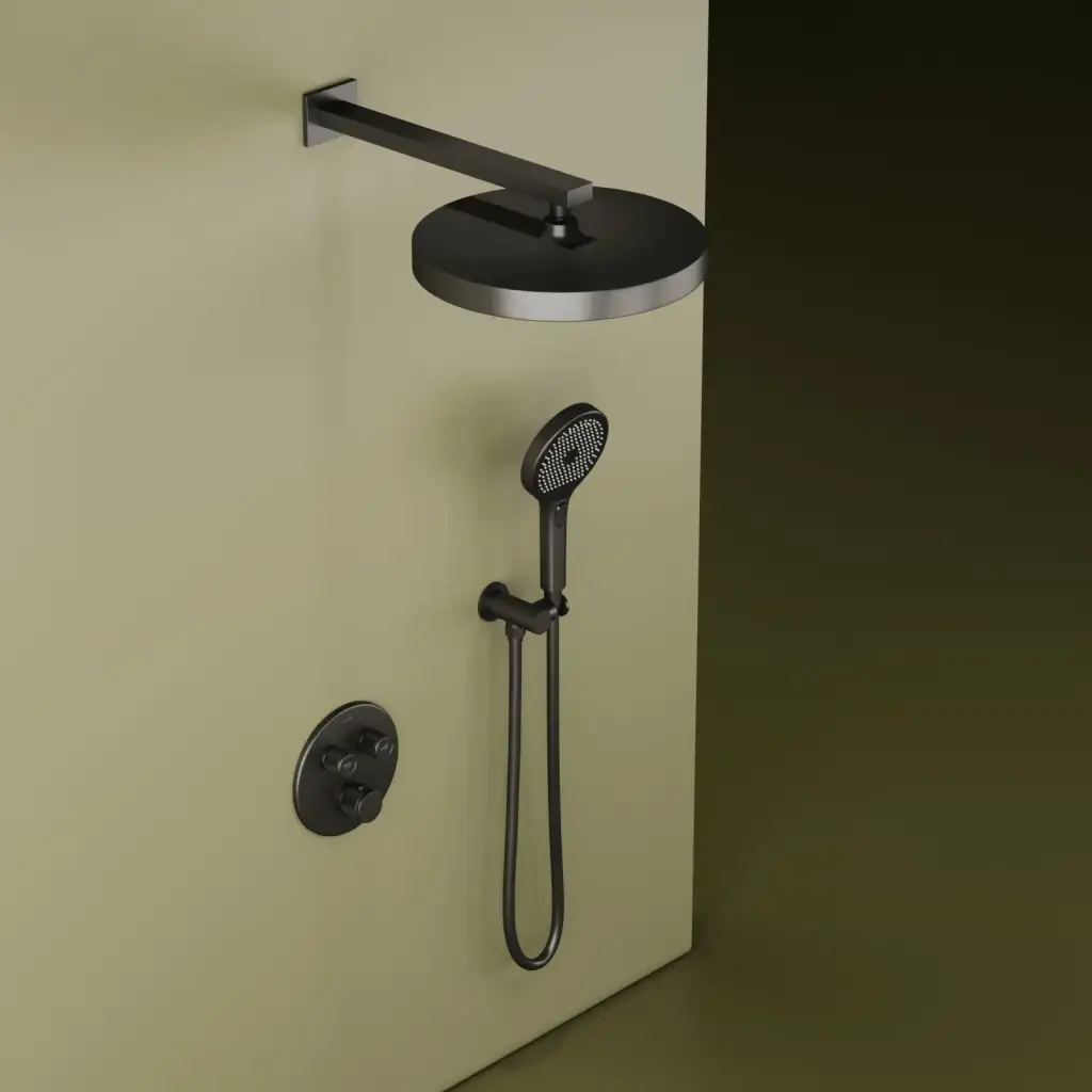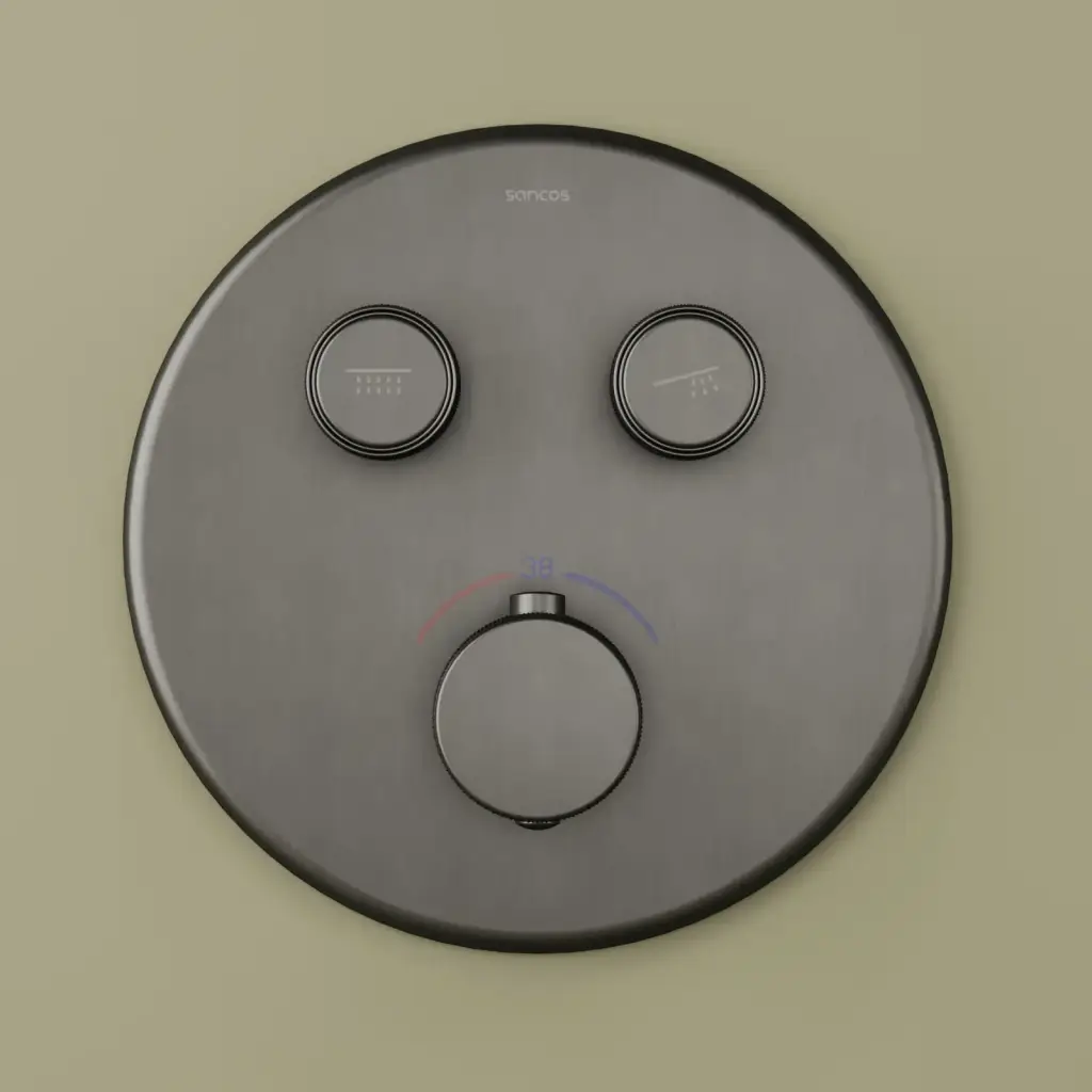 Душевой комплект SANCOS Космос (Space) встраиваемый c термостатическим смесителем, цвет вороненая сталь , арт. SC3006GMG
