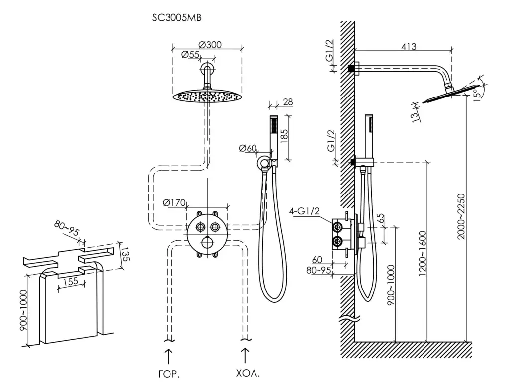 Душевой комплект SANCOS Связь (Link) встраиваемый, c термостатическим смесителем, цвет хром, арт. SC3005CH
