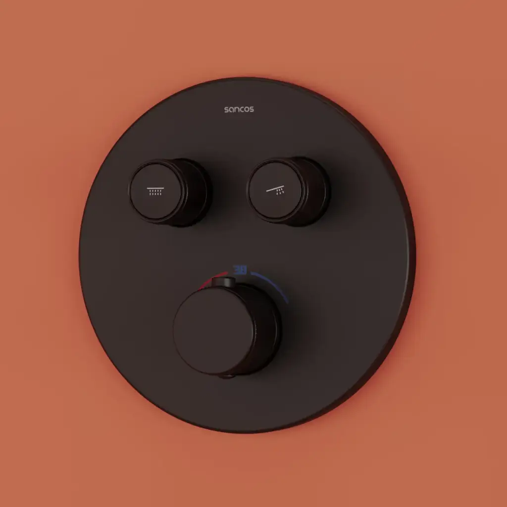 Душевой комплект SANCOS Связь (Link) встраиваемый, c термостатическим смесителем, цвет черный матовый, арт. SC3005MB