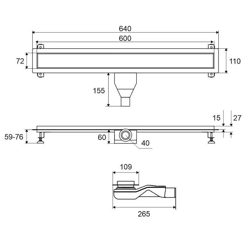 Душевой трап EXCELLENT Stilio 60 см. под облицовку плиткой (хром)