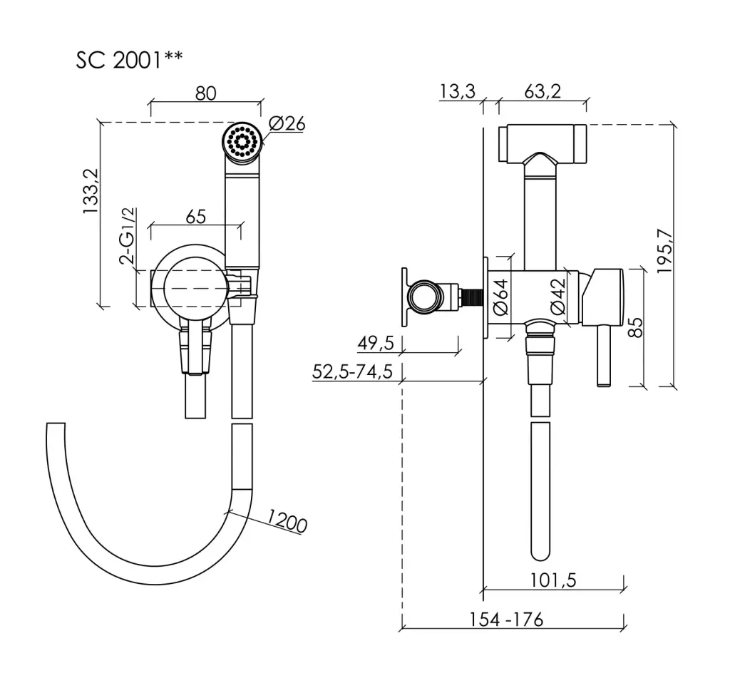 Гигиенический душ SANCOS Атом (Atom) со смесителем, цвет черный матовый, арт. SC2001MB