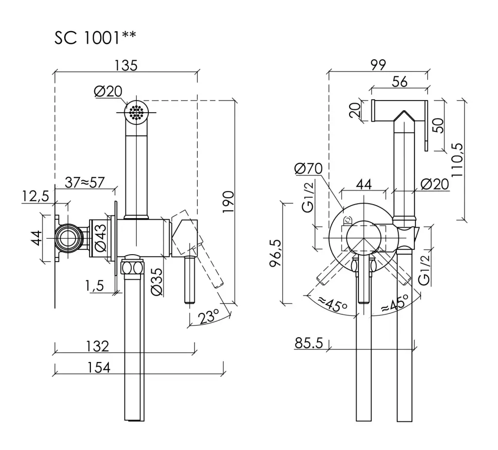 Гигиенический душ SANCOS Старт (Start) со смесителем, цвет хром глянцевый, арт. SC1001CH