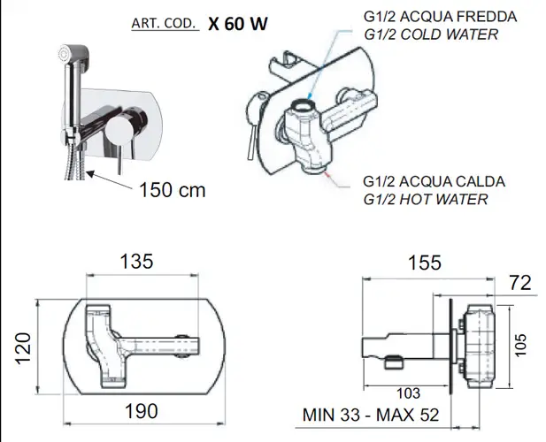 Гигиенический душ со смесителем Remer X Style X60W