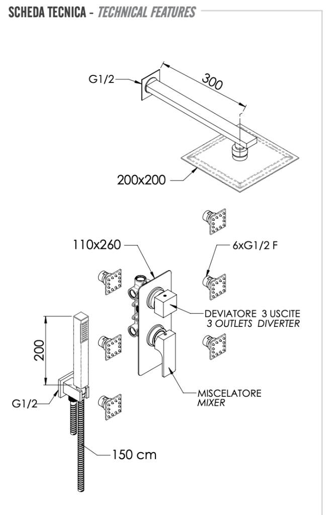 Комплект: Душевая система Remer Absolute AU93S02UFS20