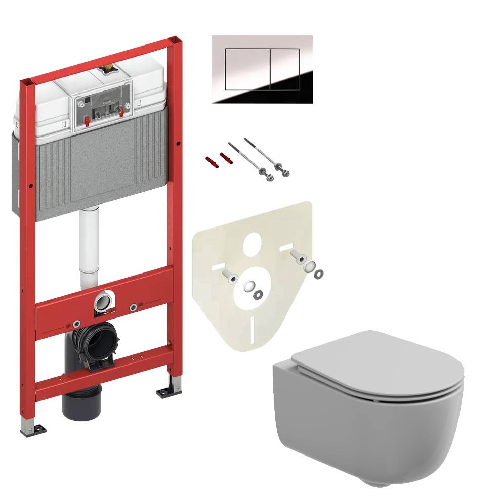 Комплект: Подвесной унитаз с крышкой и креплением GSG Ceramic Design Hit! HIWCSO000+HICOPRSLTICRCN000+ACS40EX, белый глянцевый + инсталляция TECE Profil 9400412 c кнопкой