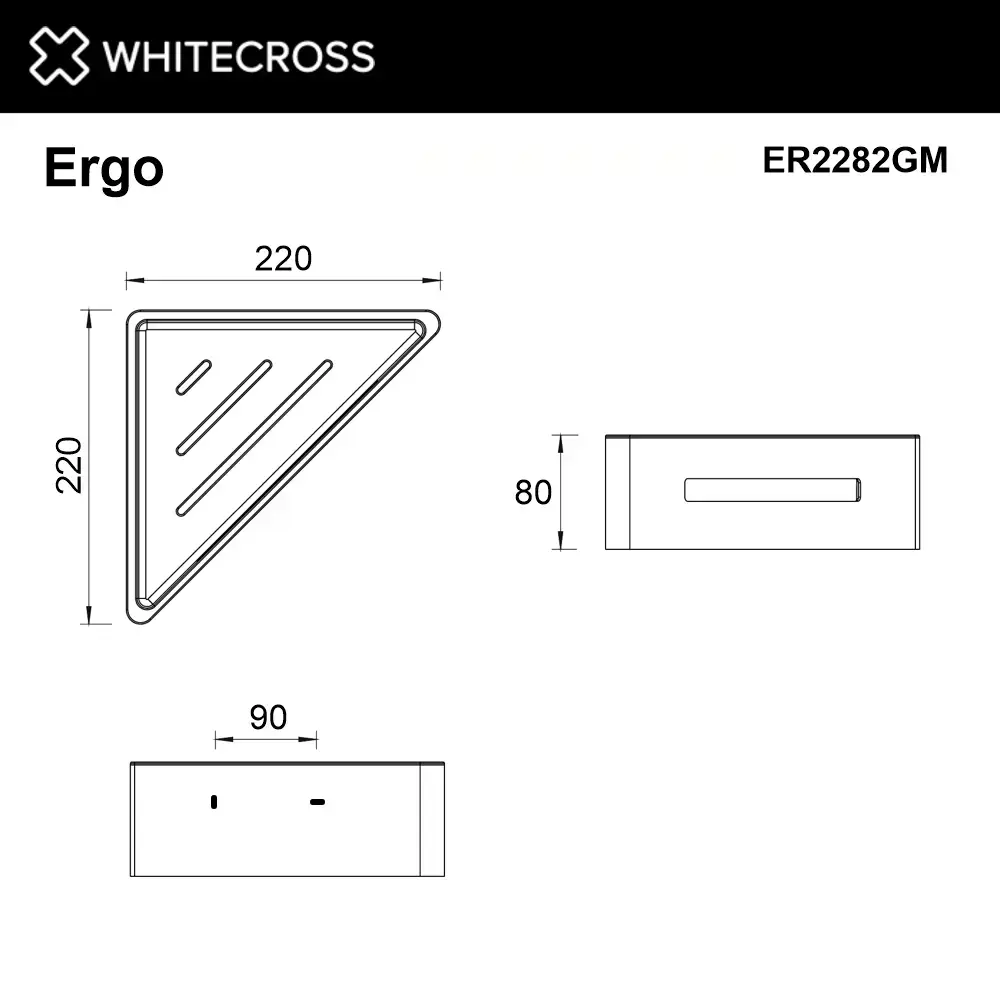 Полка для душа угловая WHITECROSS Ergo ER2282BL (черный мат);Полка для душа угловая WHITECROSS Ergo ER2282CPB (брашированная медь);Полка для душа угловая WHITECROSS Ergo ER2282CR (хром);Полка для душа угловая WHITECROSS Ergo ER2282GLB (брашированное золото);Полка для душа угловая WHITECROSS Ergo ER2282GM (оружейная сталь);Полка для душа угловая WHITECROSS Ergo ER2282NIB (брашированный никель)