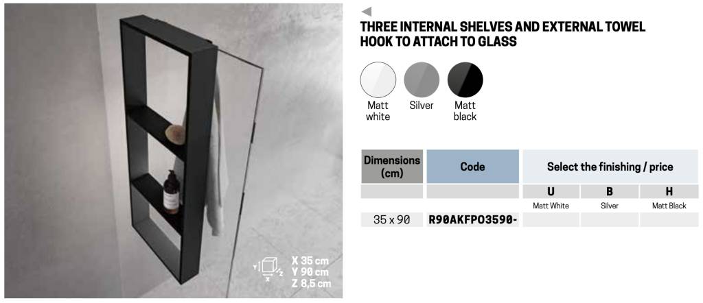 Полка тройная с крючком 35х90 см Novellini Frame R90AKFPO3590-Н, цвет Black Matt