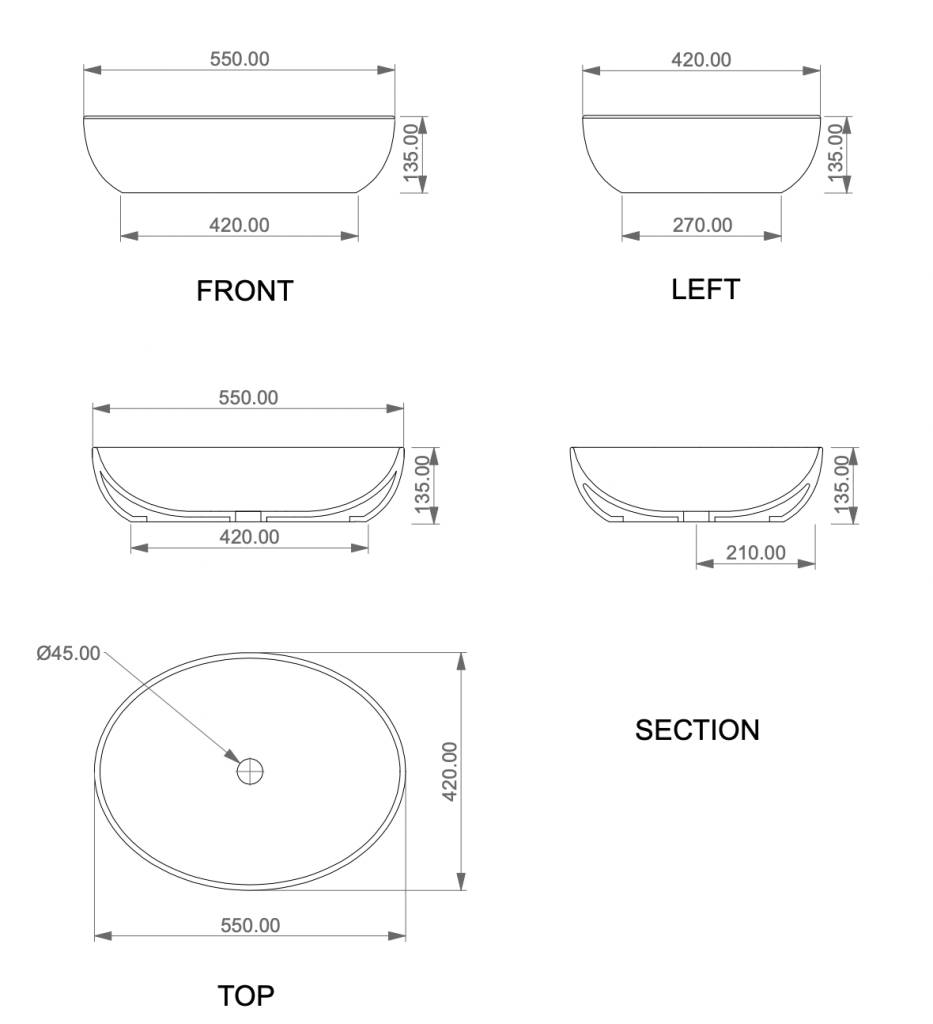 Раковина накладная 45 см GSG Ceramic Design Easy EALAVQU45030, Cashmere Matt