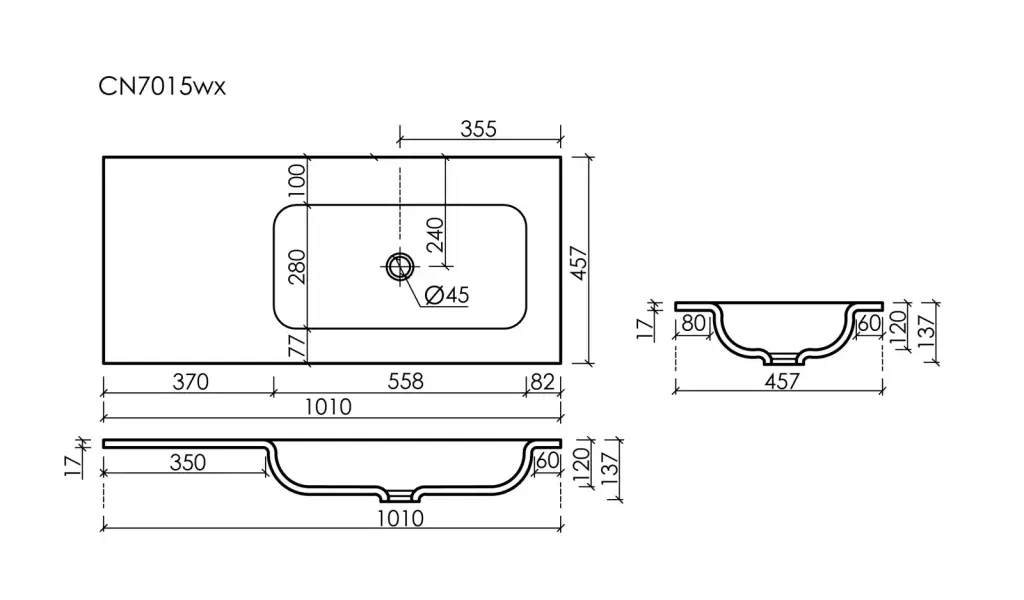 Раковина накладная Ceramicanova Grace чаша справа без отв под смеситель 1010x457x137 белый CN7015wx
