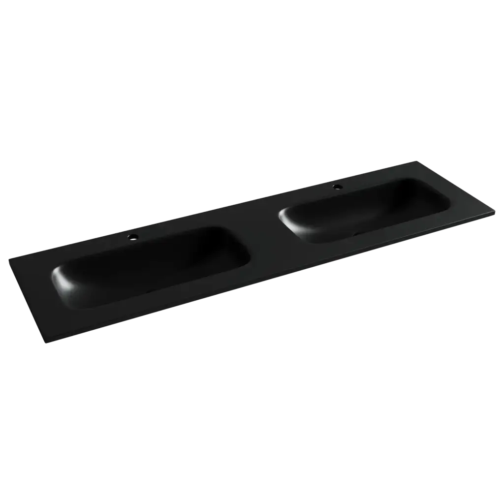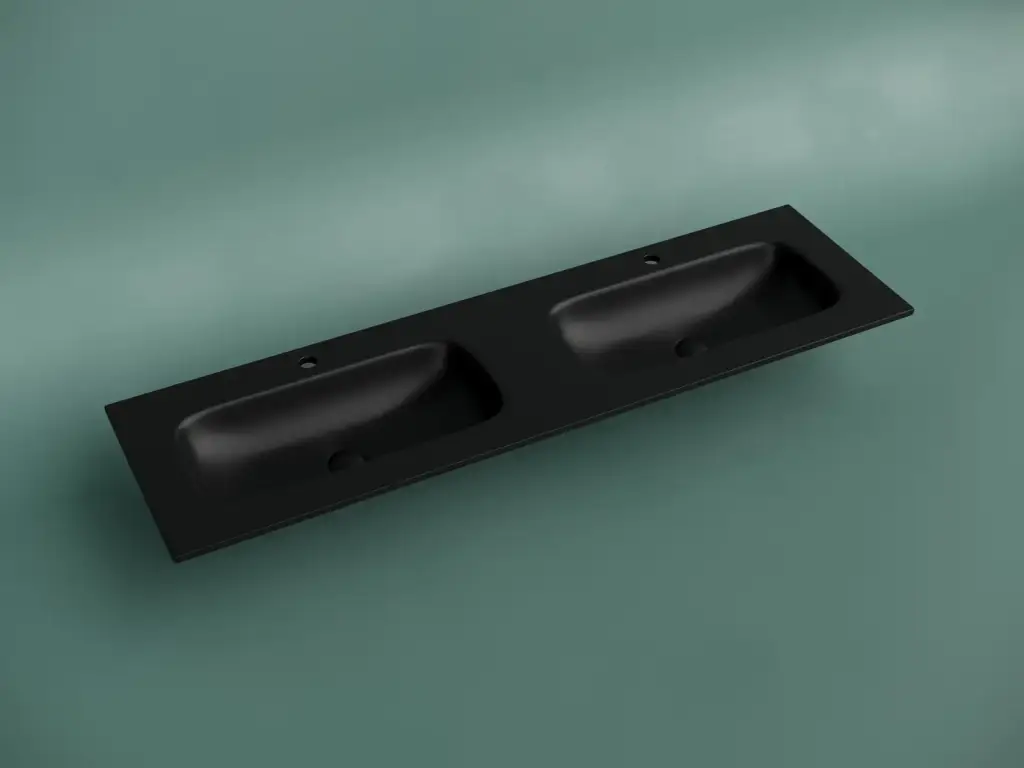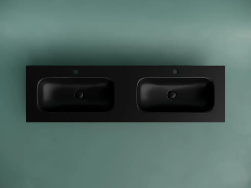 Раковина накладная мебельная Grace прямоугольная 1610x457x137 с двумя чашами и отверстиями под смеситель цвет черный матовый CN7023MB