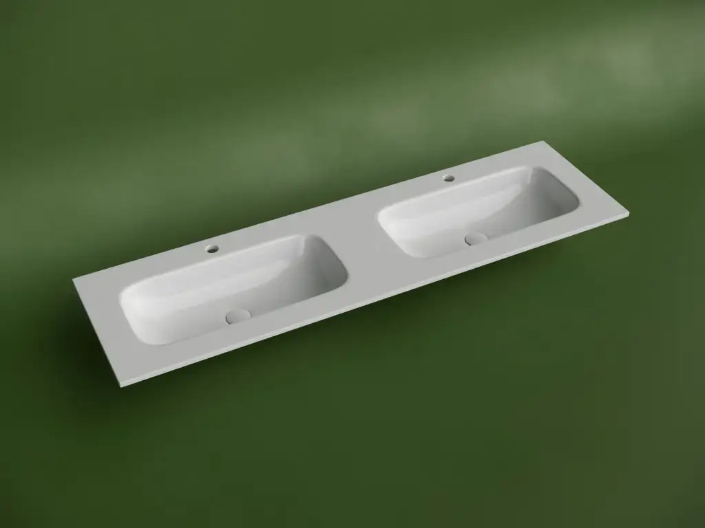 Раковина накладная мебельная Grace прямоугольная 1610x457x137 с двумя чашами и отверстиями под смеситель цвет белый CN7023
