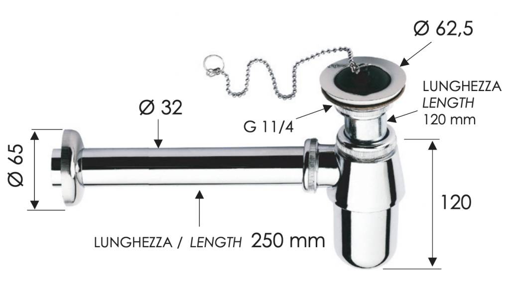 Сифон с выпуском 1”1/4 Remer 973Z114, замак