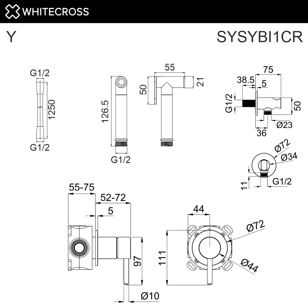 Система для биде скрытого монтажа WHITECROSS Y SYSYBI1CR (хром)