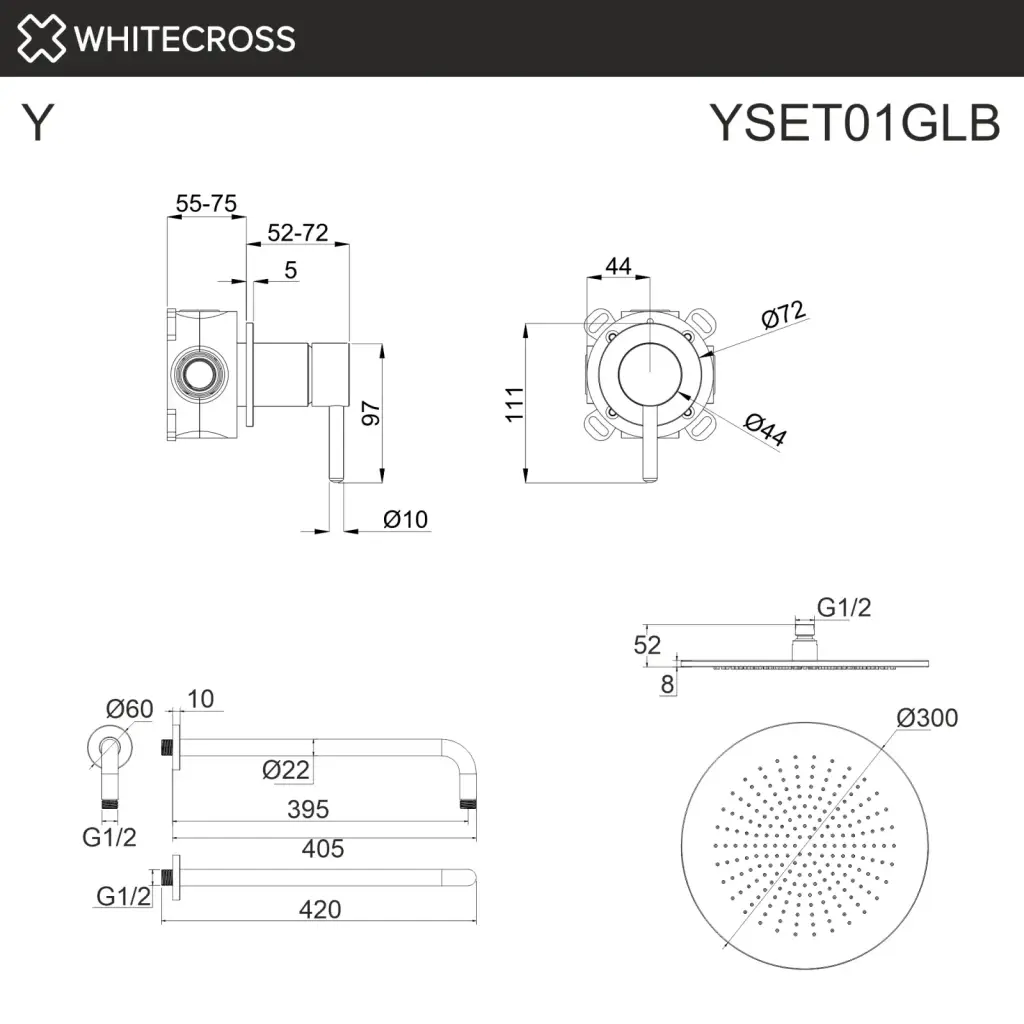 Система для душа скрытого монтажа WHITECROSS Y YSET01BL (черный мат);Система для душа скрытого монтажа WHITECROSS Y YSET01CR (хром);Система для душа скрытого монтажа WHITECROSS Y YSET01GL (золото);Система для душа скрытого монтажа WHITECROSS Y YSET01GLB (брашированное золото);Система для душа скрытого монтажа WHITECROSS Y YSET01GM (оружейная сталь);Система для душа скрытого монтажа WHITECROSS Y YSET01NIB (брашированный никель)